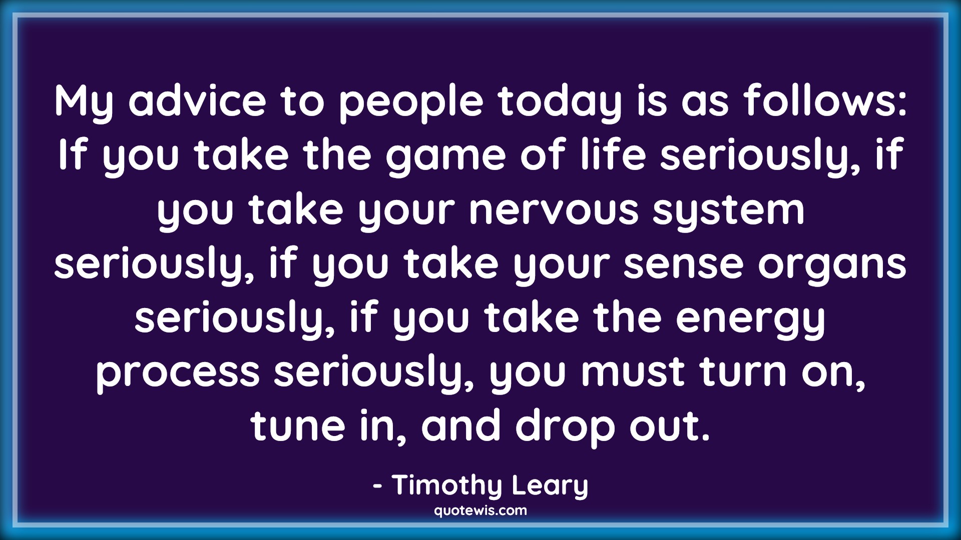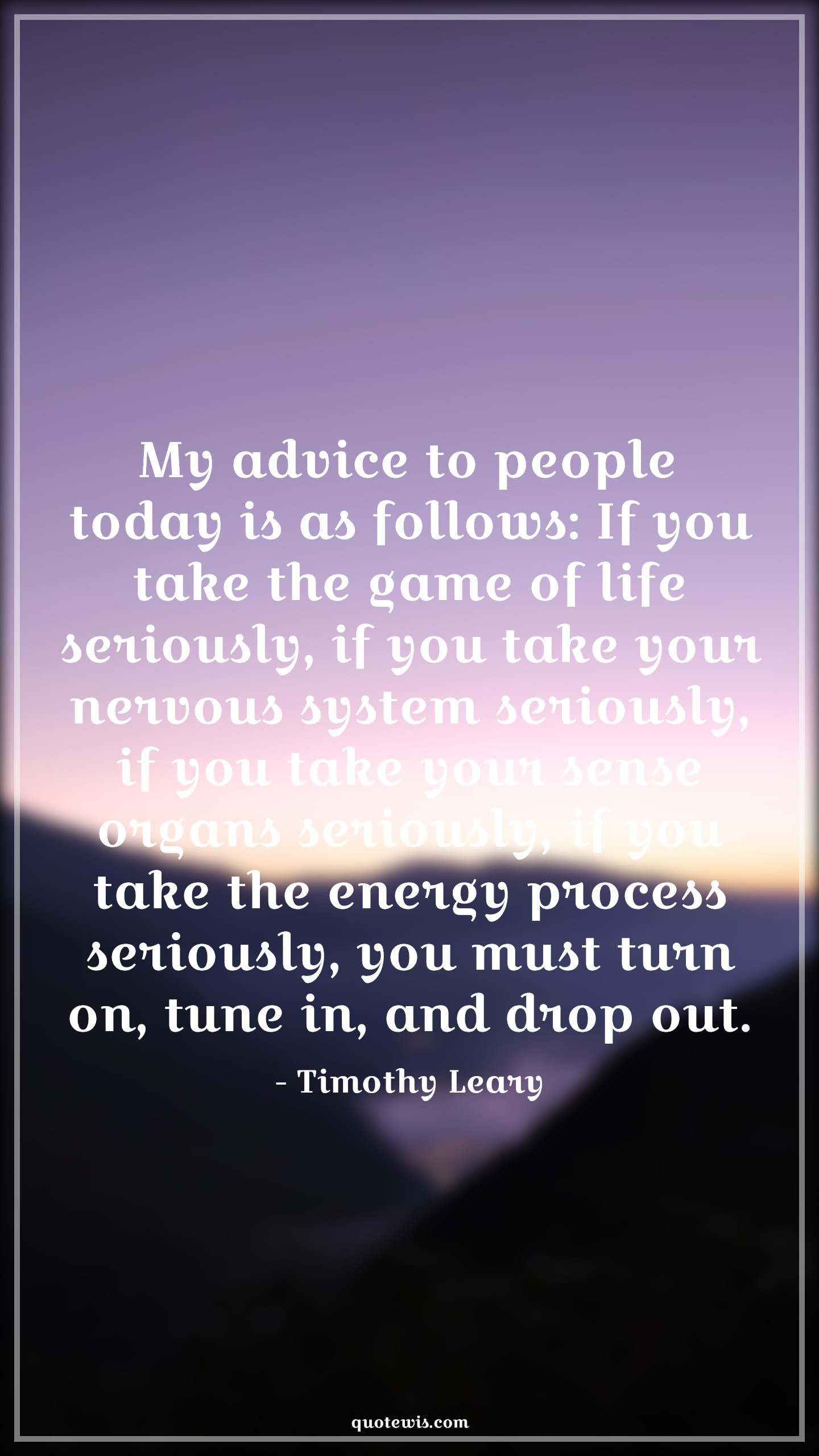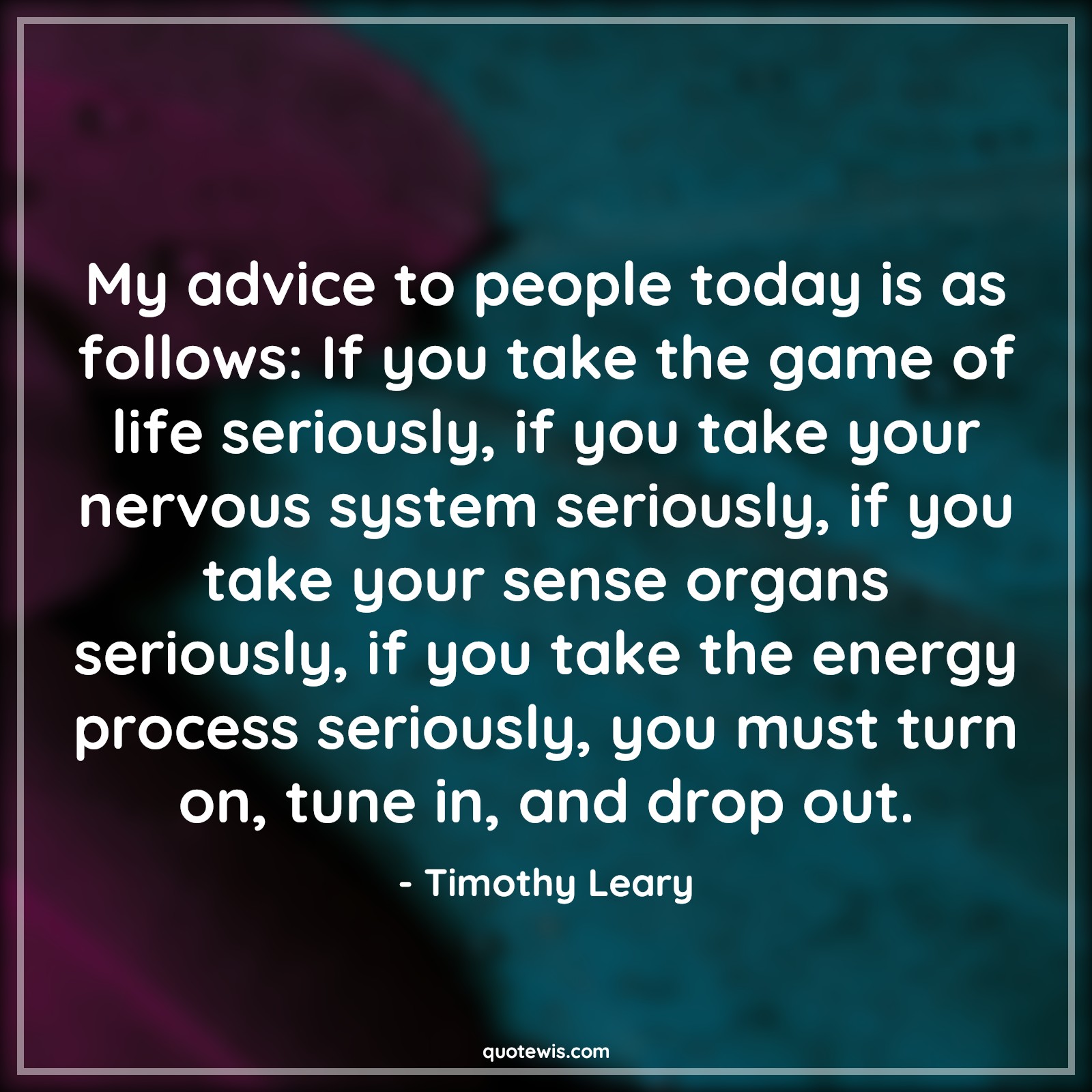My advice to people today is as follows: If you take the game of life seriously, if you take your nervous system seriously, if you take your sense organs seriously, if you take the energy process seriously, you must turn on, tune in, and drop out.