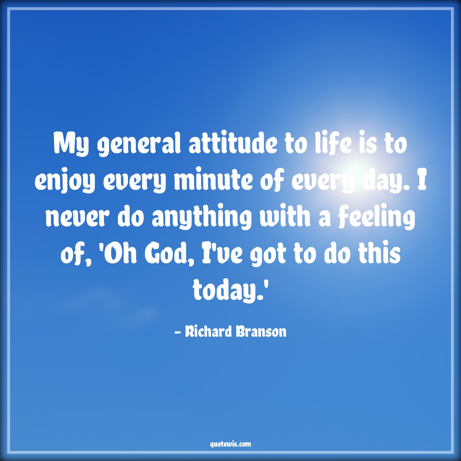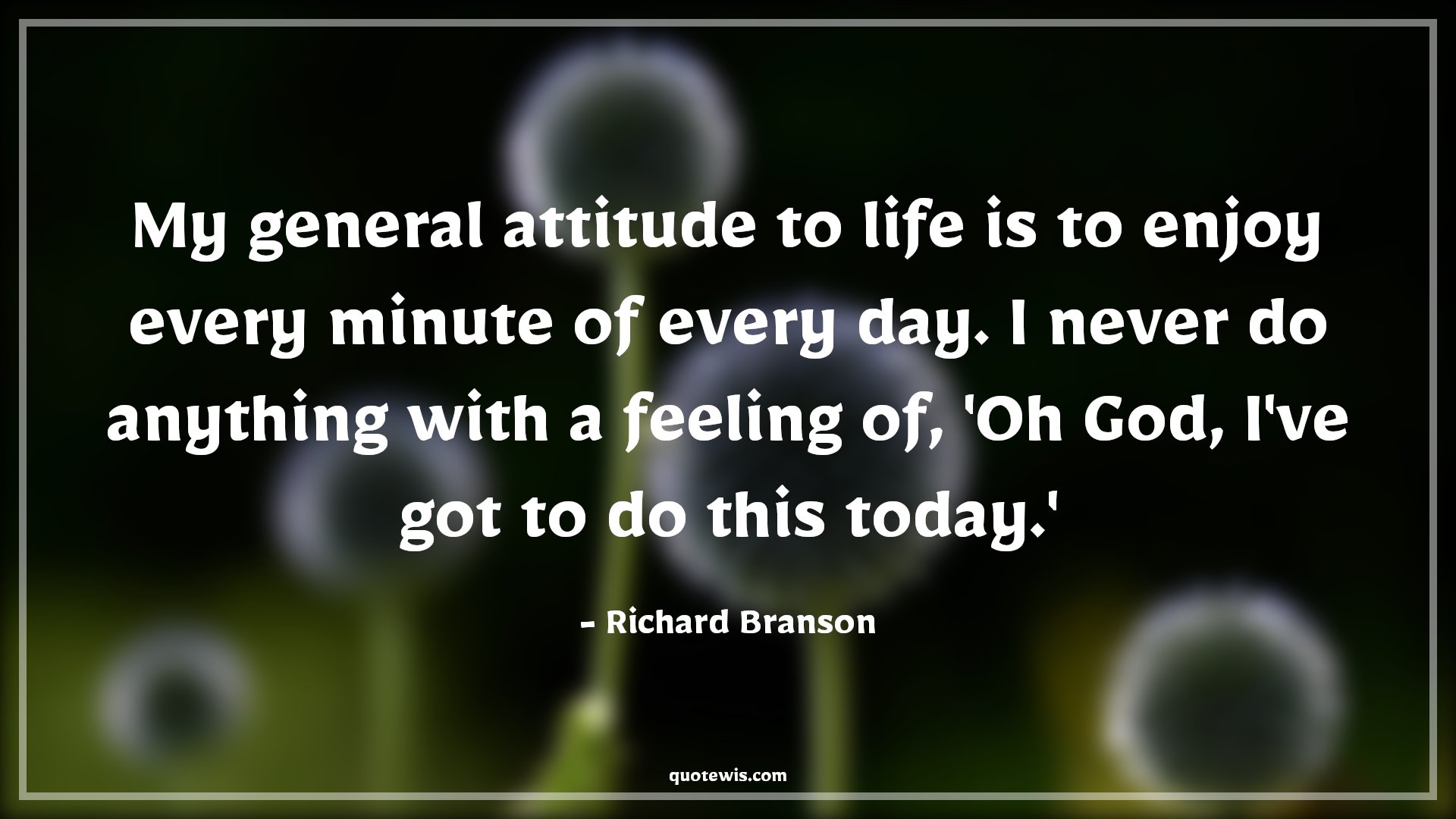 My general attitude to life is to enjoy every minute of every day. I never do anything with a feeling of, 'Oh God, I've got to do this today.'