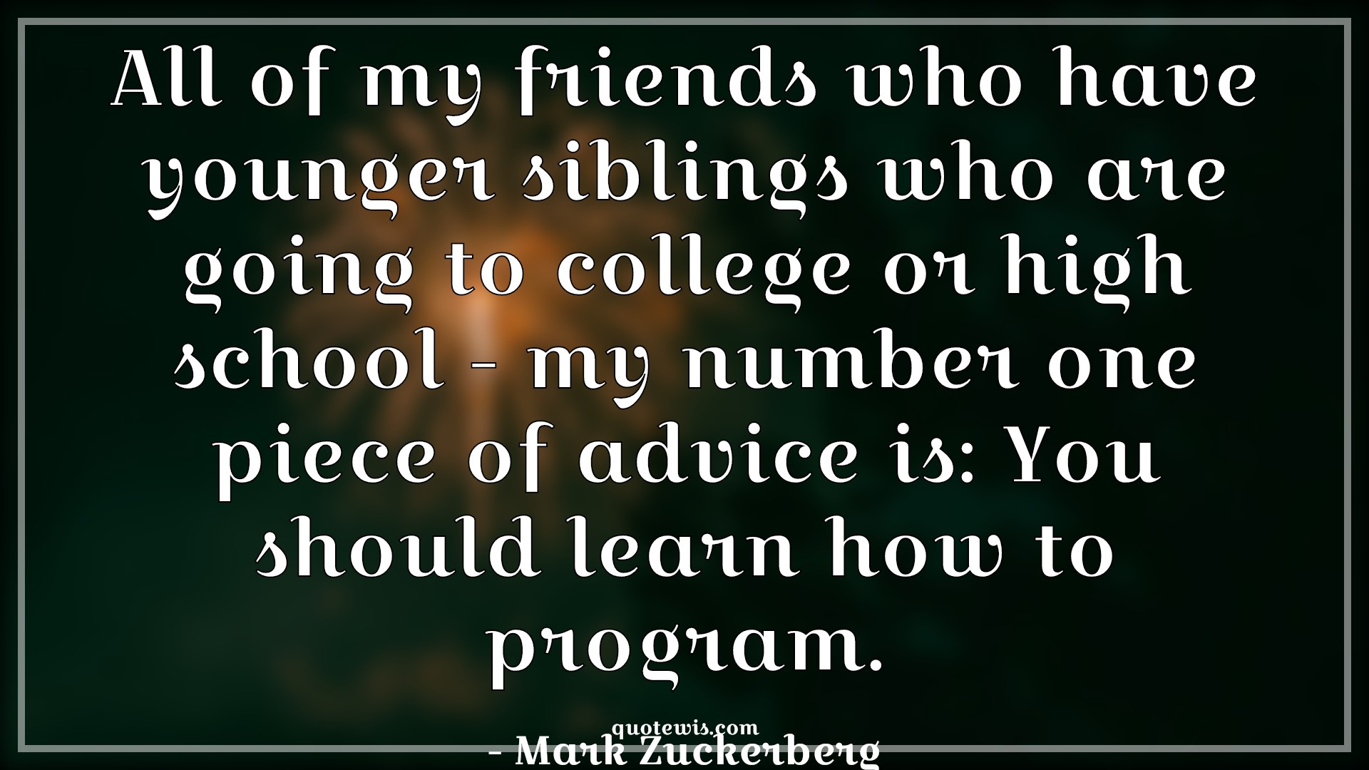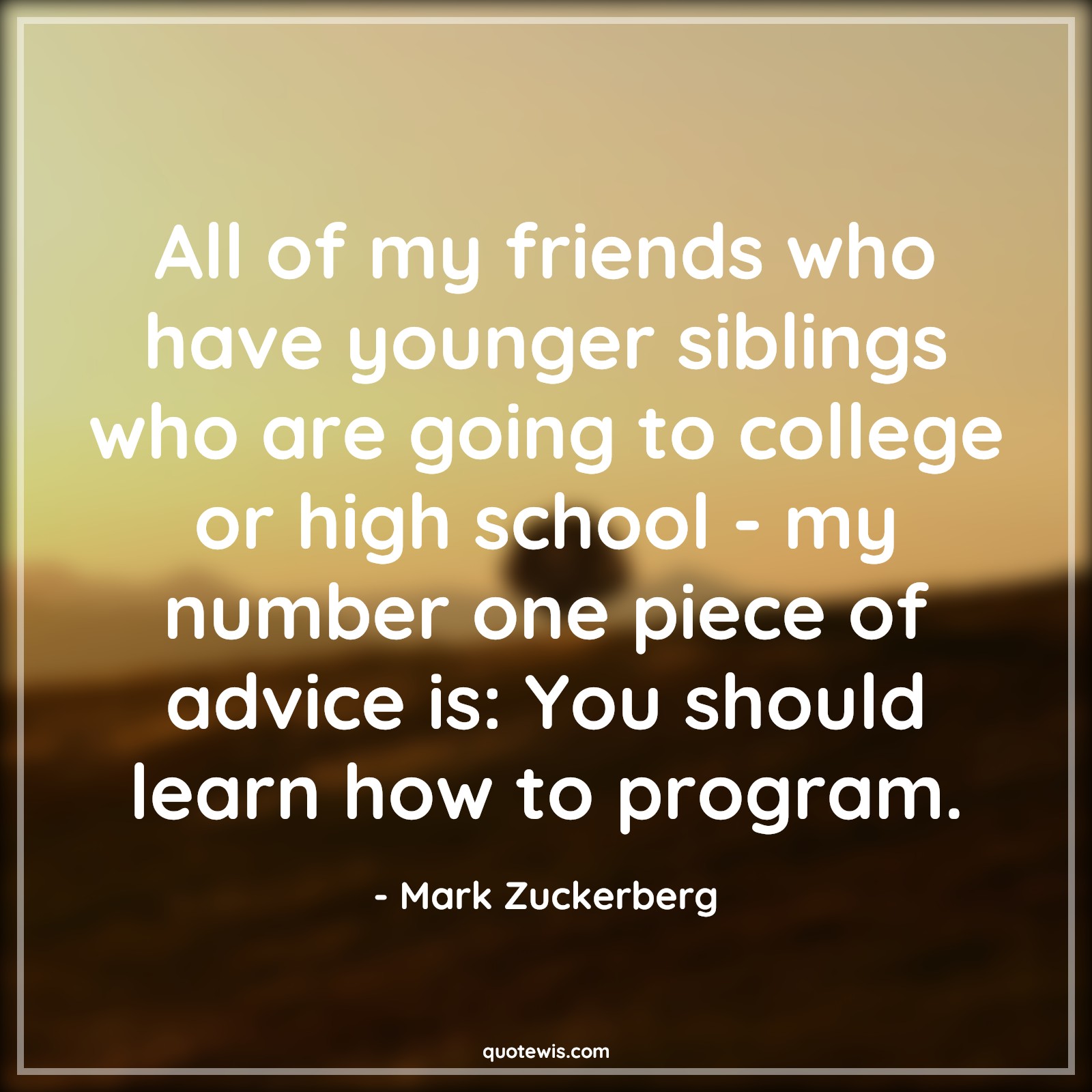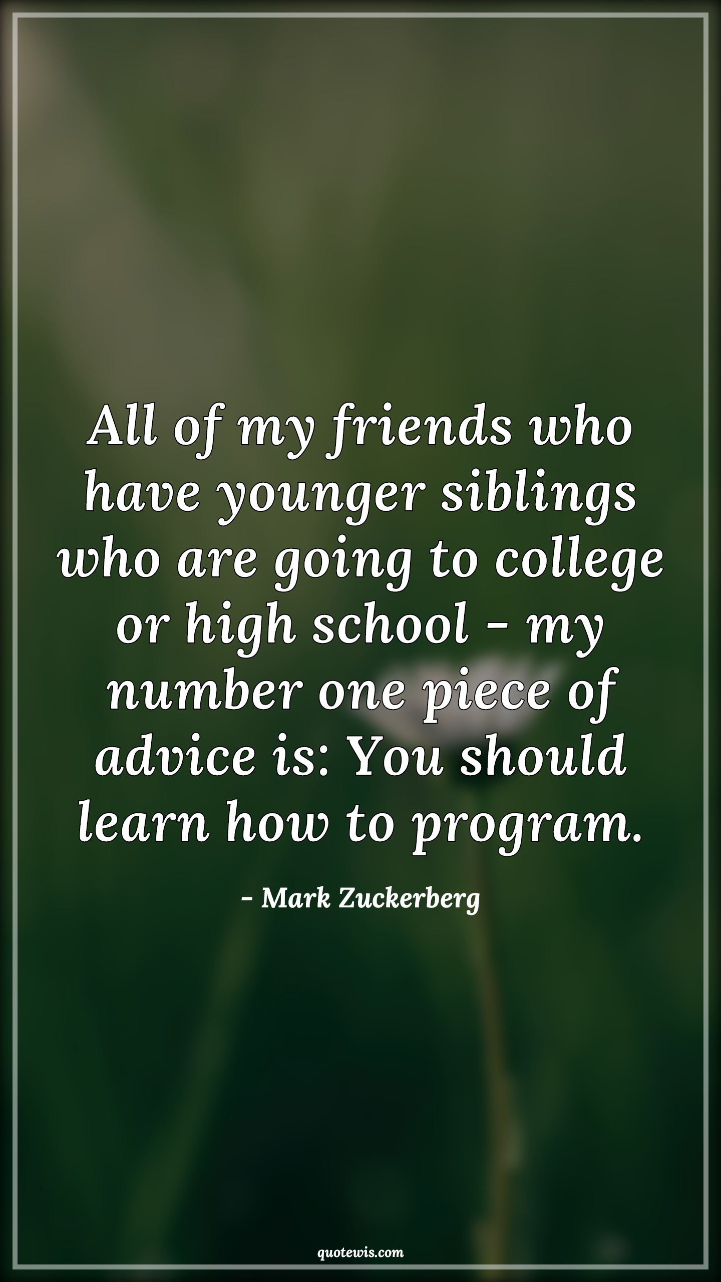 All of my friends who have younger siblings who are going to college or high school - my number one piece of advice is: You should learn how to program.