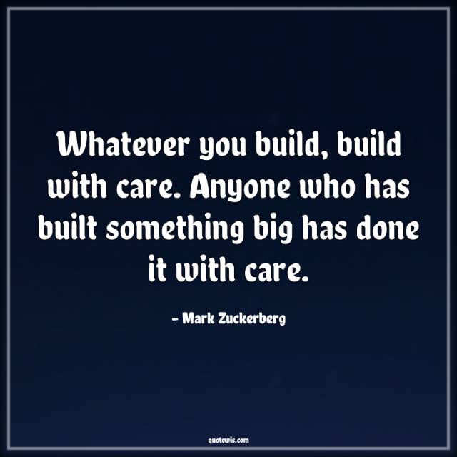 Whatever you build, build with care. Anyone who has built something big has done it with care.