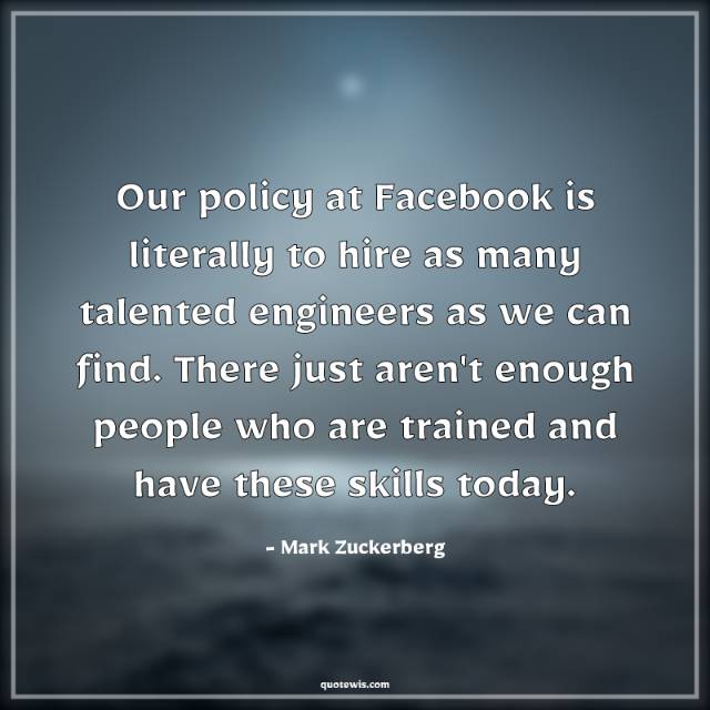 Our policy at Facebook is literally to hire as many talented engineers as we can find. There just aren't enough people who are trained and have these skills today.