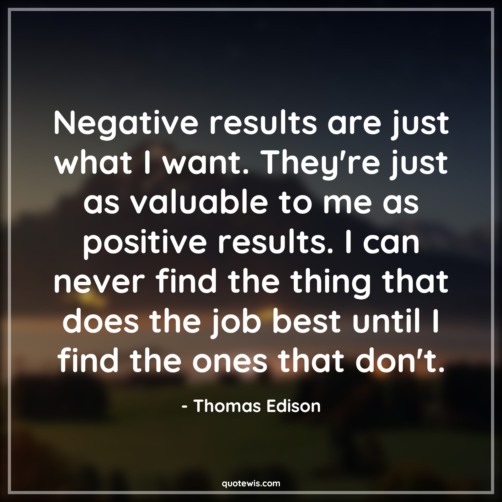 Negative results are just what I want. They're just as valuable to me as positive results. I can never find the thing that does the job best until I find the ones that don't.
