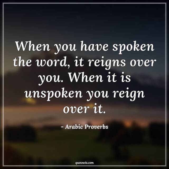 When you have spoken the word, it reigns over you. When it is unspoken you reign over it.