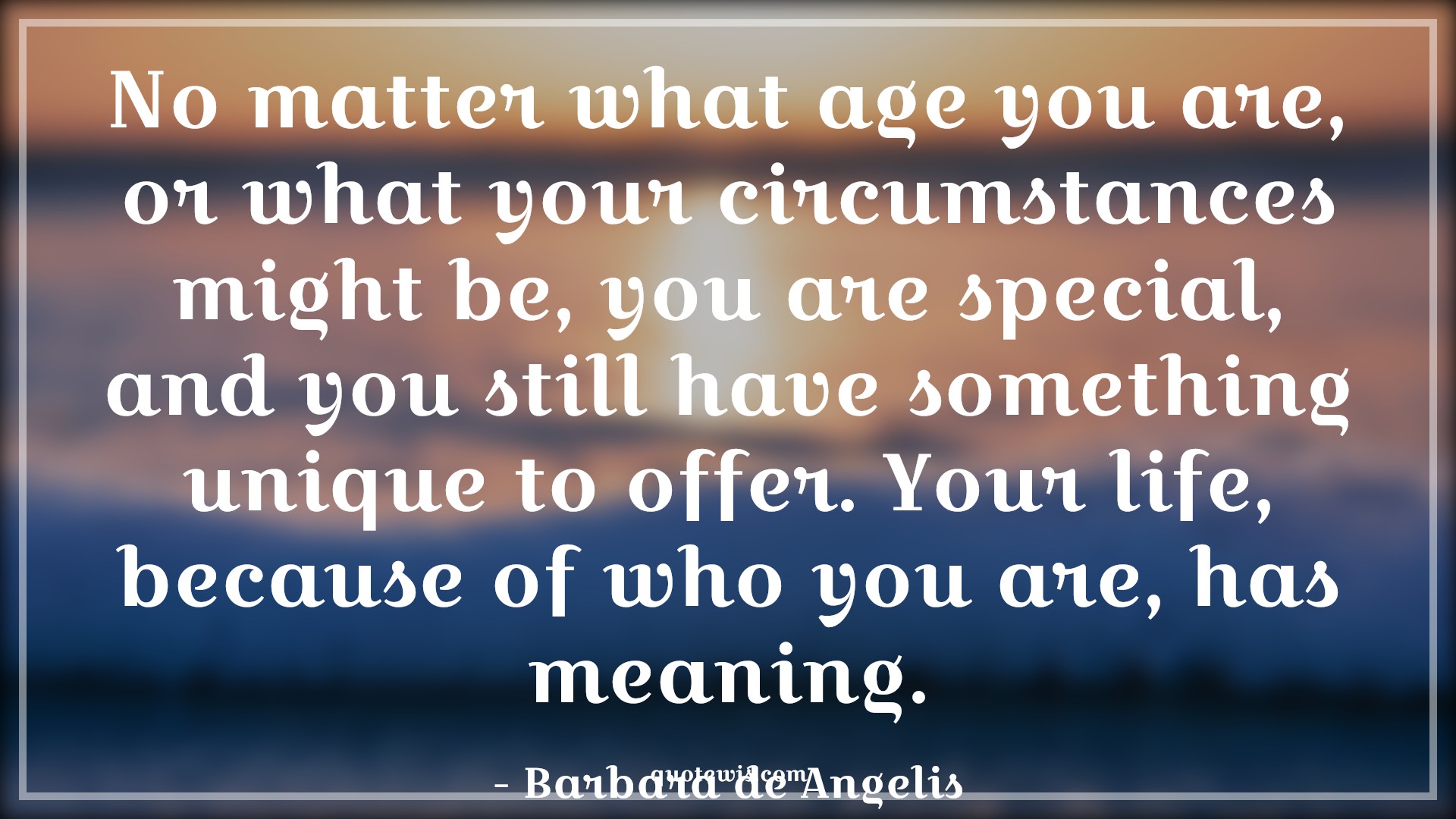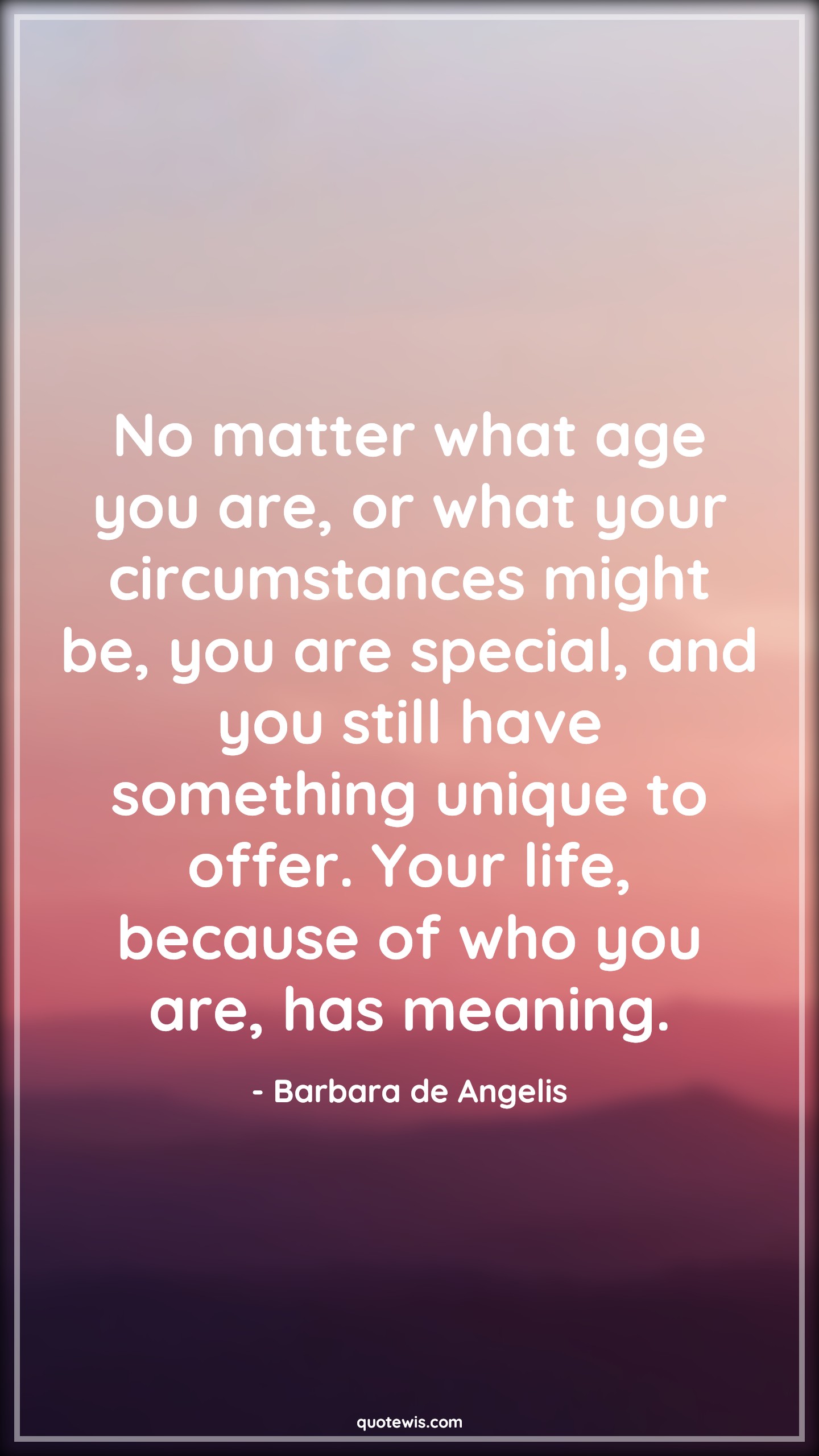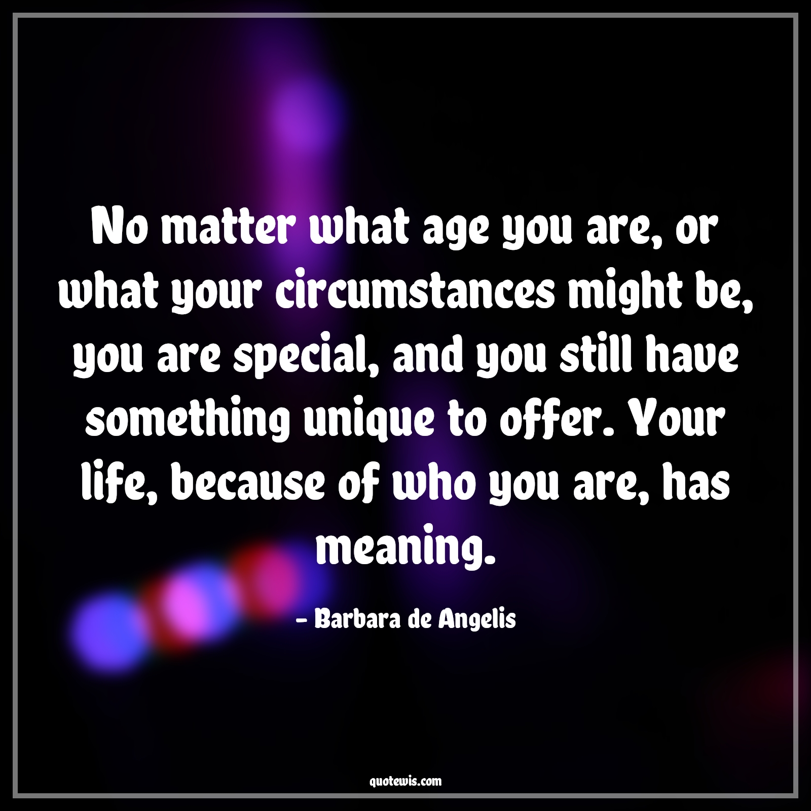 No matter what age you are, or what your circumstances might be, you are special, and you still have something unique to offer. Your life, because of who you are, has meaning.