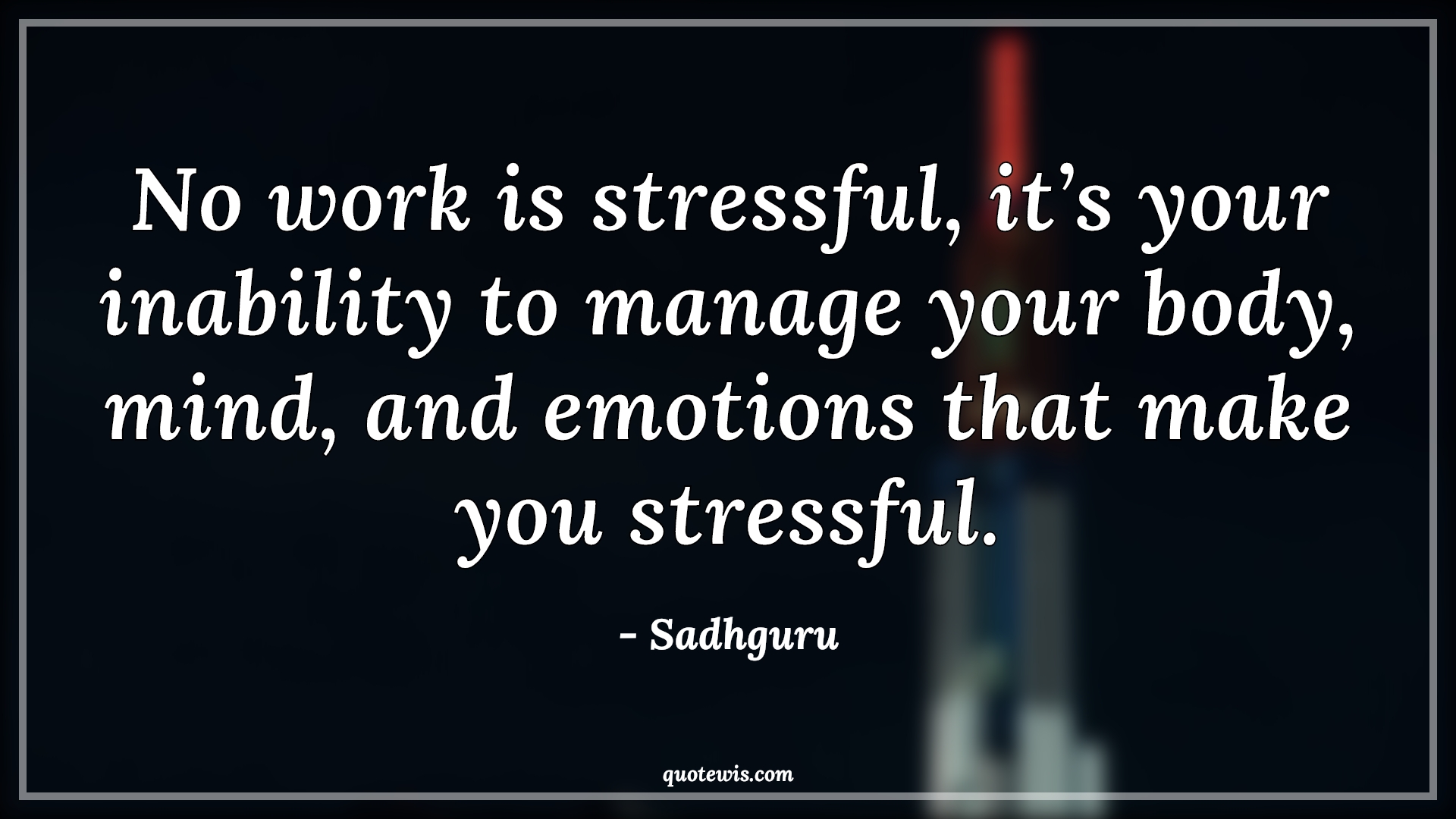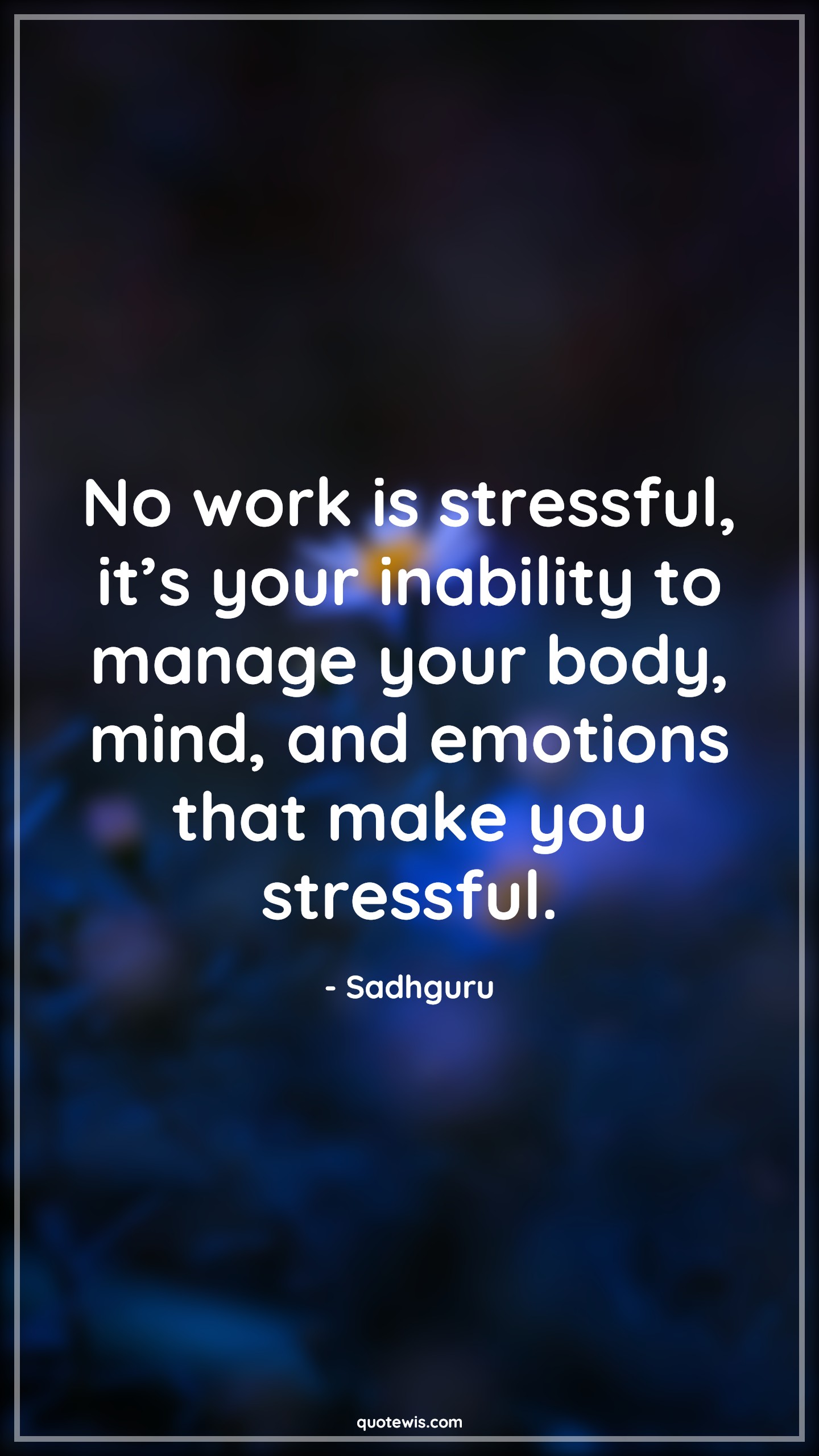 No work is stressful, it’s your inability to manage your body, mind, and emotions that make you stressful.