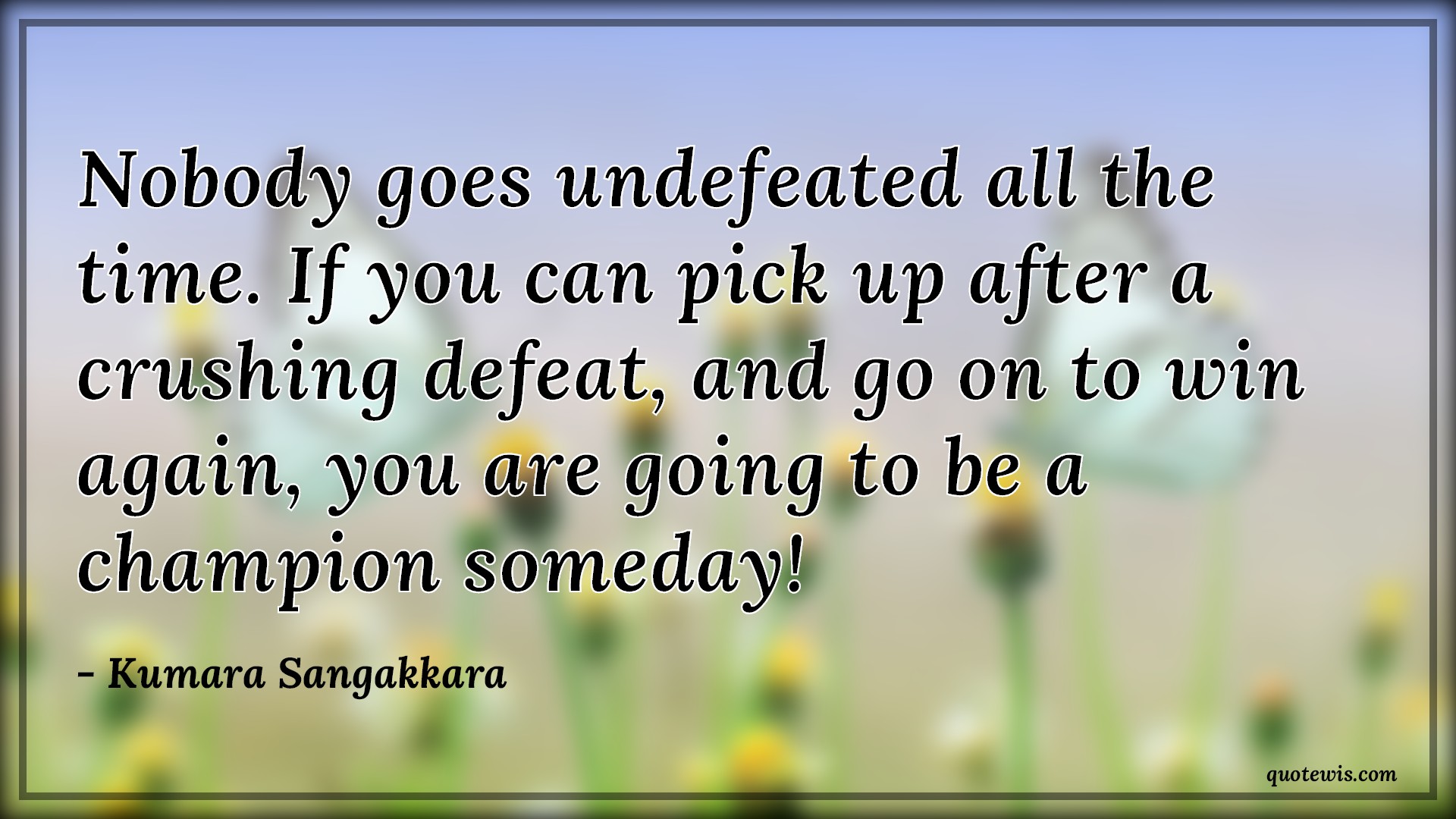 Nobody goes undefeated all the time. If you can pick up after a crushing defeat, and go on to win again, you are going to be a champion someday!