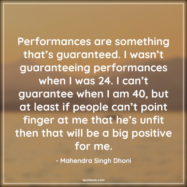 Performances are something that’s guaranteed. I wasn’t guaranteeing performances when I was 24. I can’t guarantee when I am 40, but at least if people can’t point finger at me that he’s unfit then that will be a big positive for me.