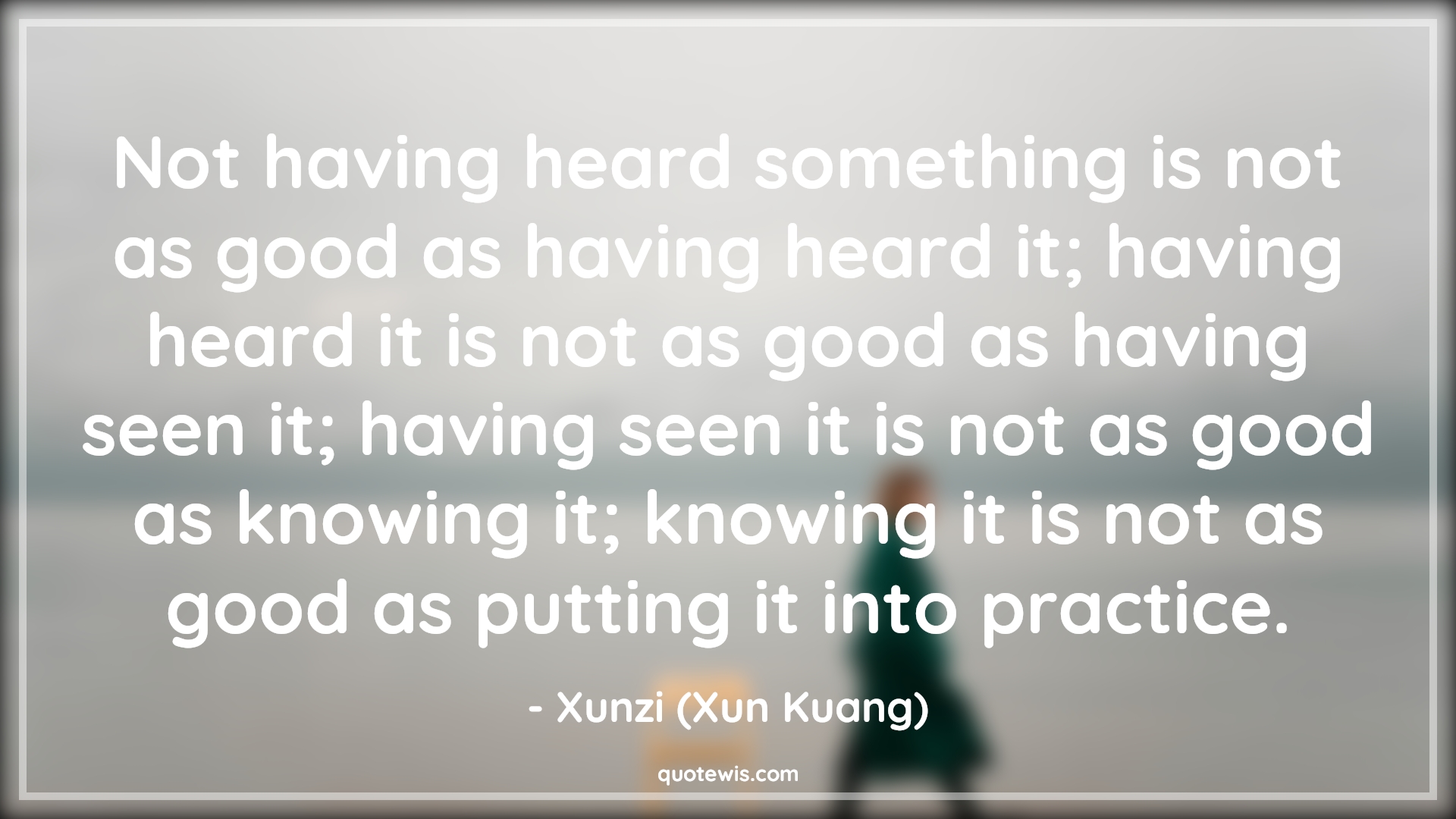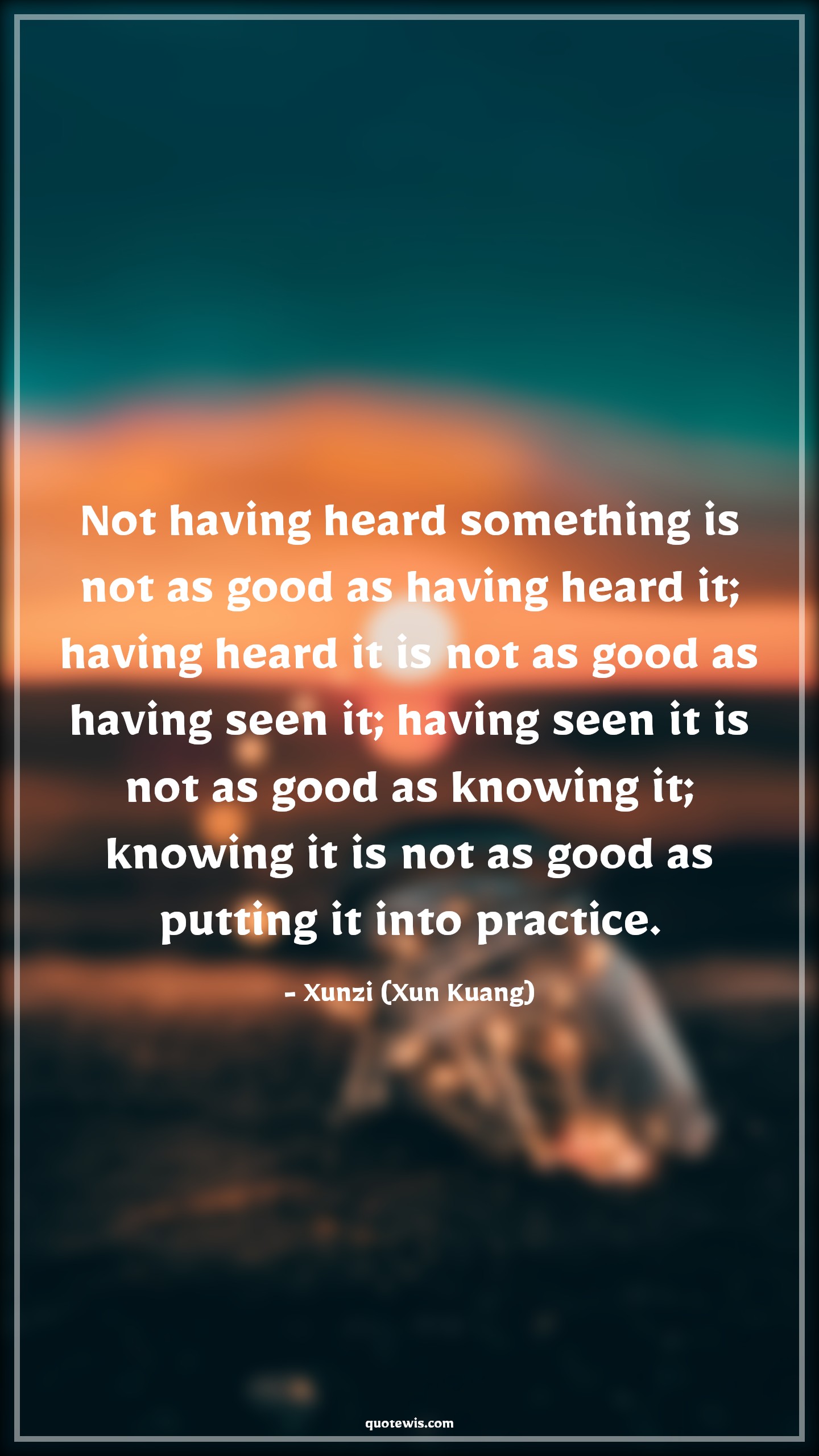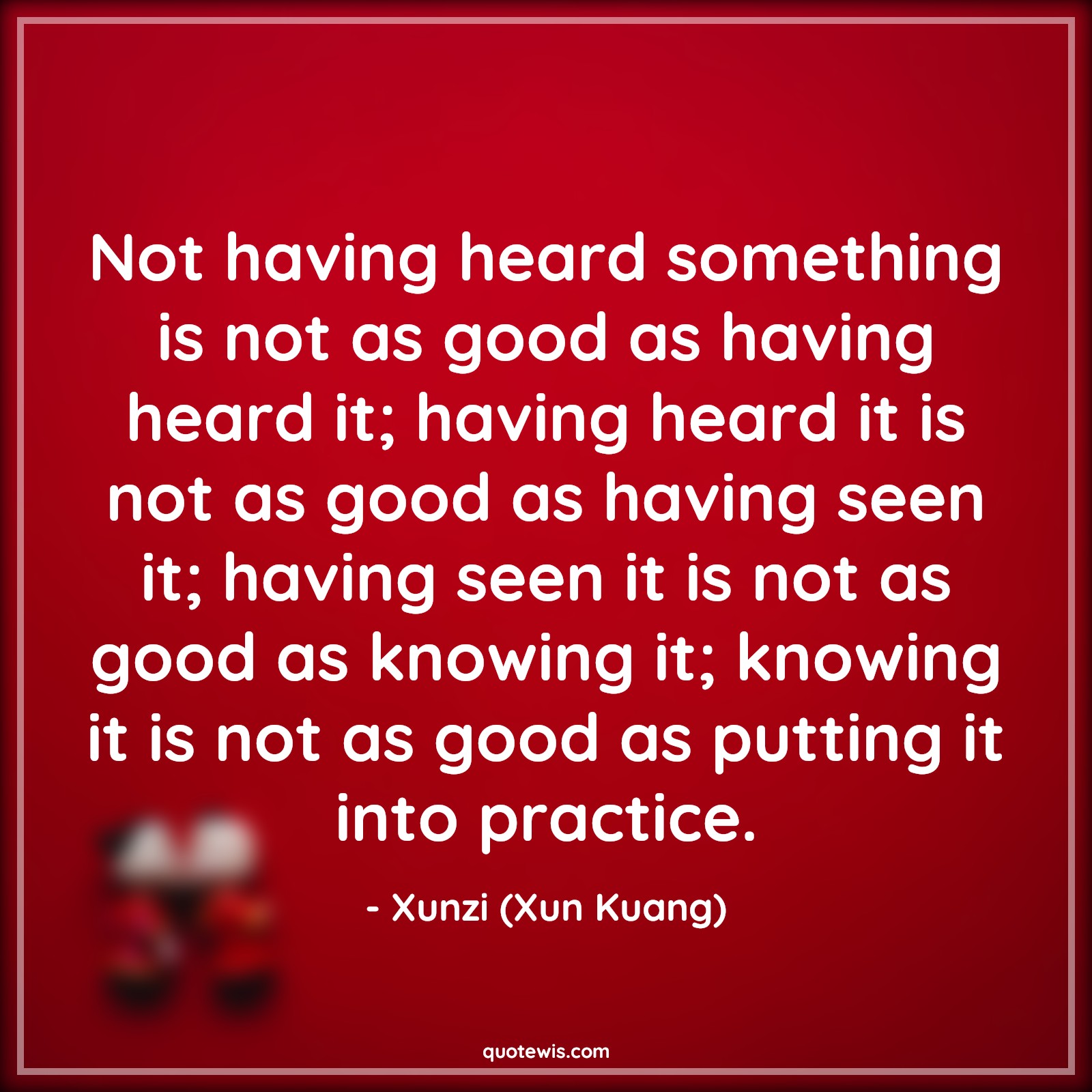 Not having heard something is not as good as having heard it; having heard it is not as good as having seen it; having seen it is not as good as knowing it; knowing it is not as good as putting it into practice.