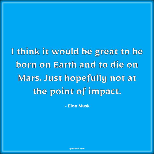 I think it would be great to be born on Earth and to die on Mars. Just hopefully not at the point of impact.