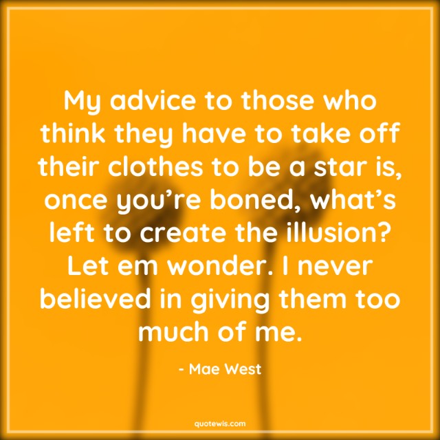 My advice to those who think they have to take off their clothes to be a star is, once you’re boned, what’s left to create the illusion? Let em wonder. I never believed in giving them too much of me.