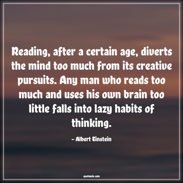 Reading, after a certain age, diverts the mind too much from its creative pursuits. Any man who reads too much and uses his own brain too little falls into lazy habits of thinking.
