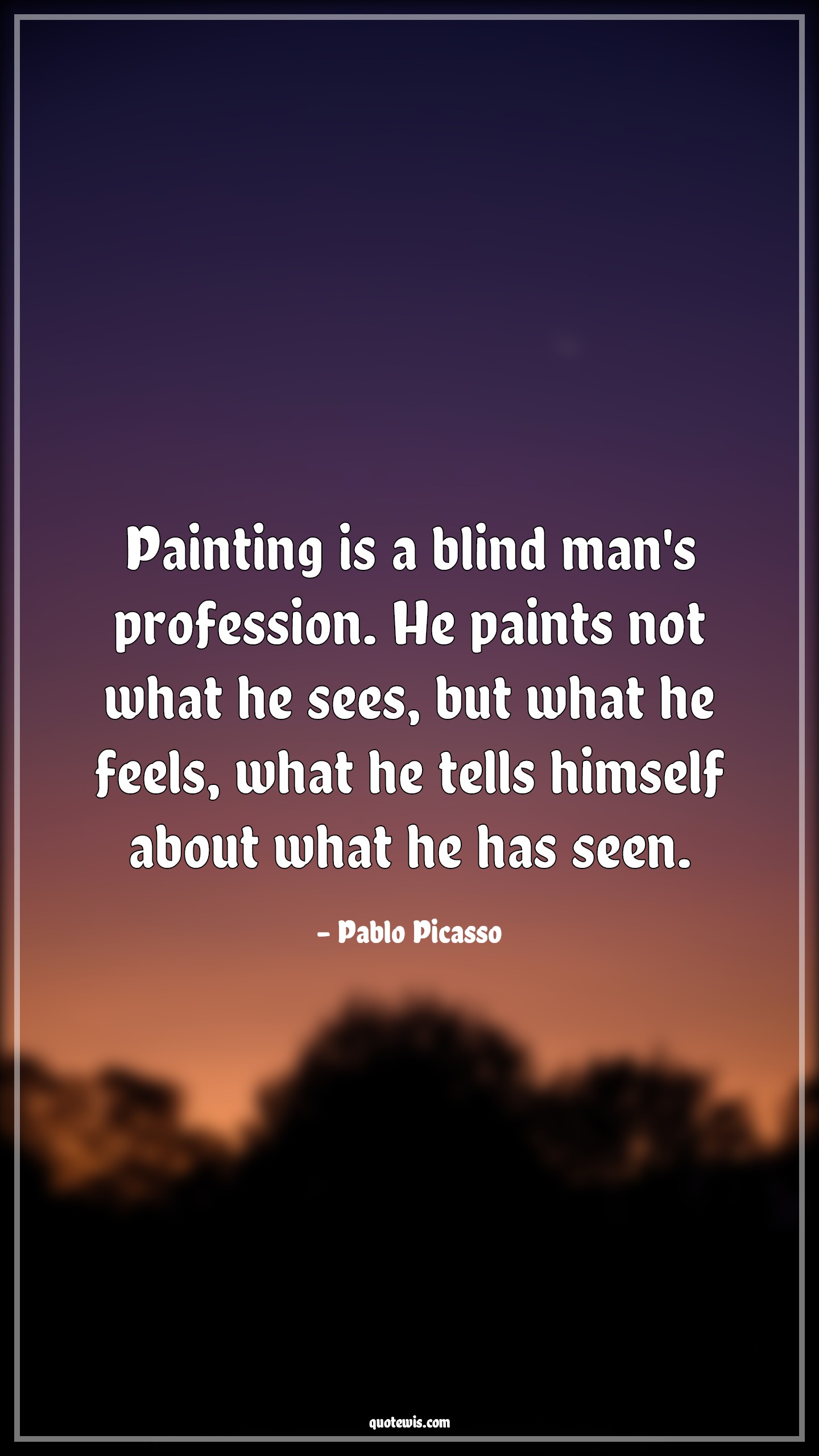 Painting is a blind man's profession. He paints not what he sees, but what he feels, what he tells himself about what he has seen.