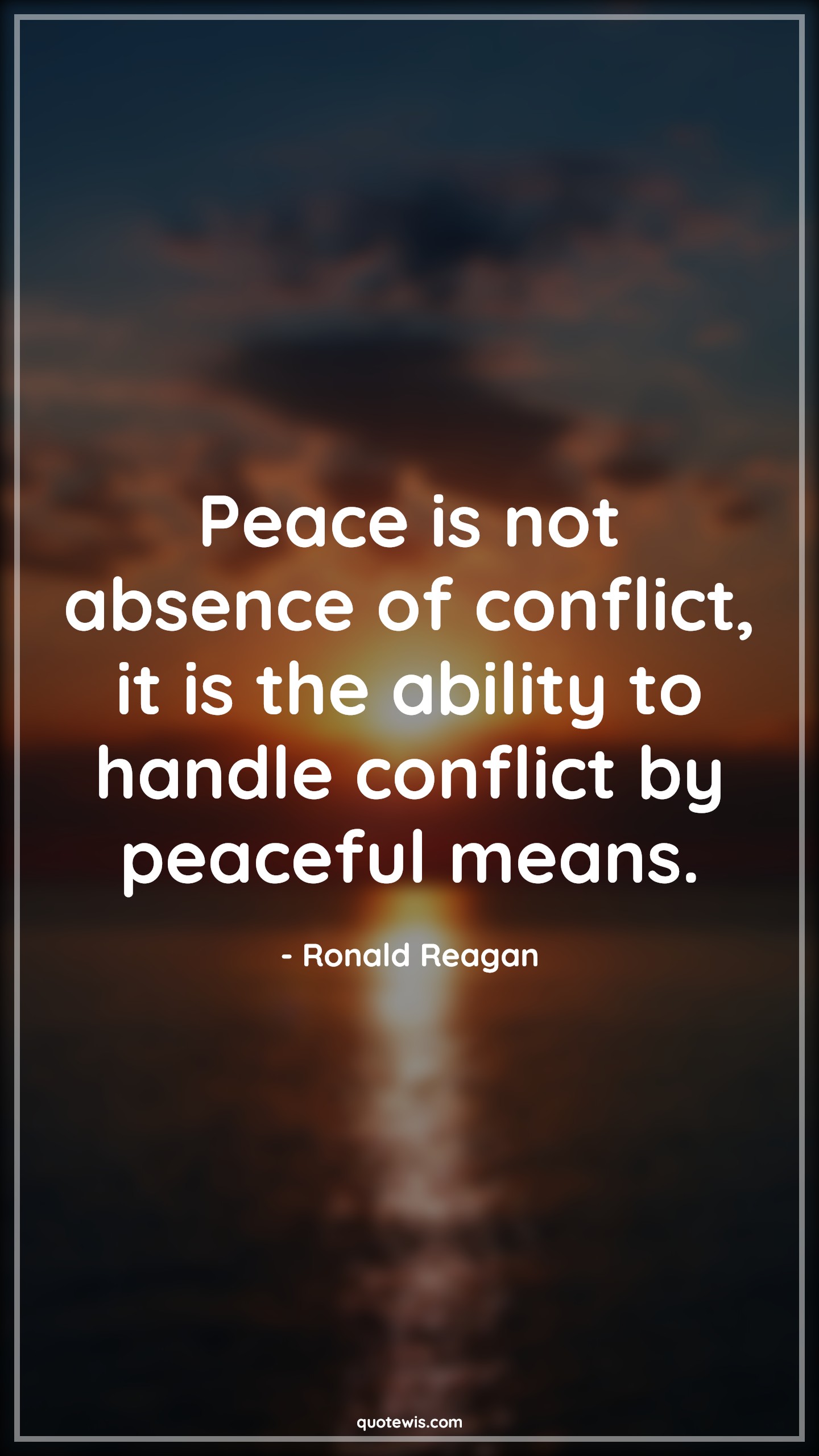 Peace is not absence of conflict, it is the ability to handle conflict by peaceful means.