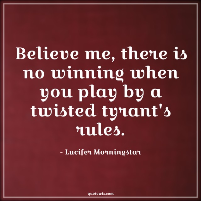 Believe me, there is no winning when you play by a twisted tyrant's rules.