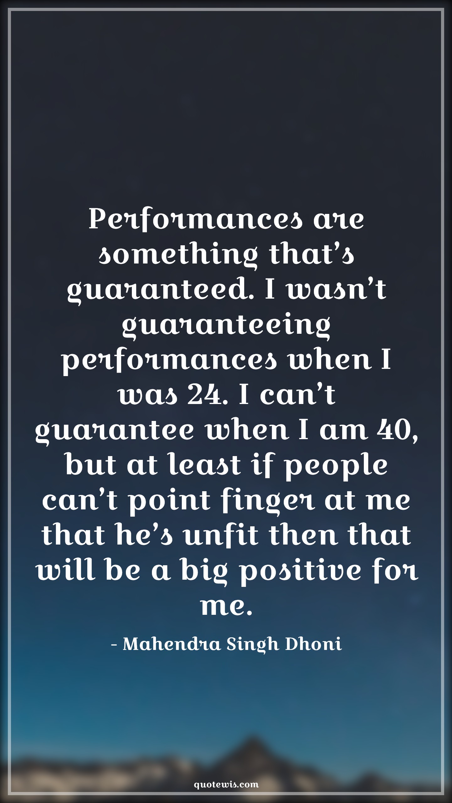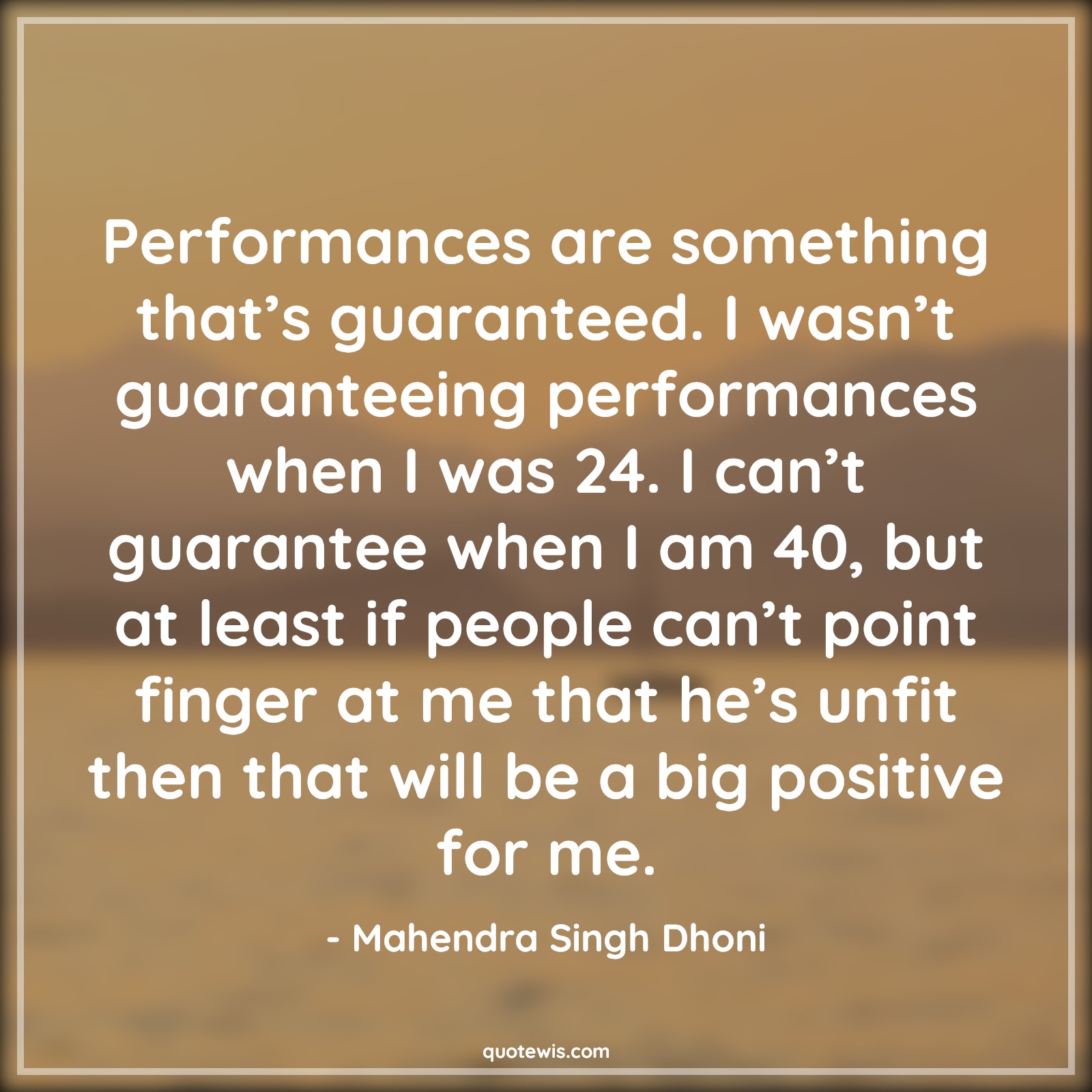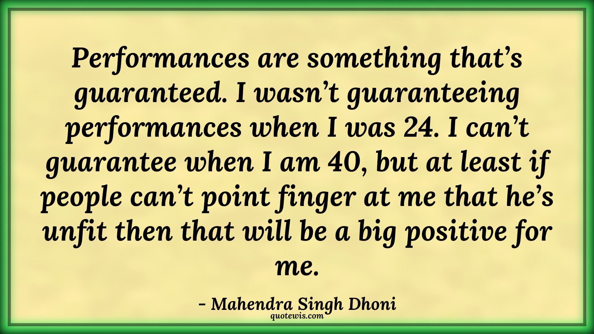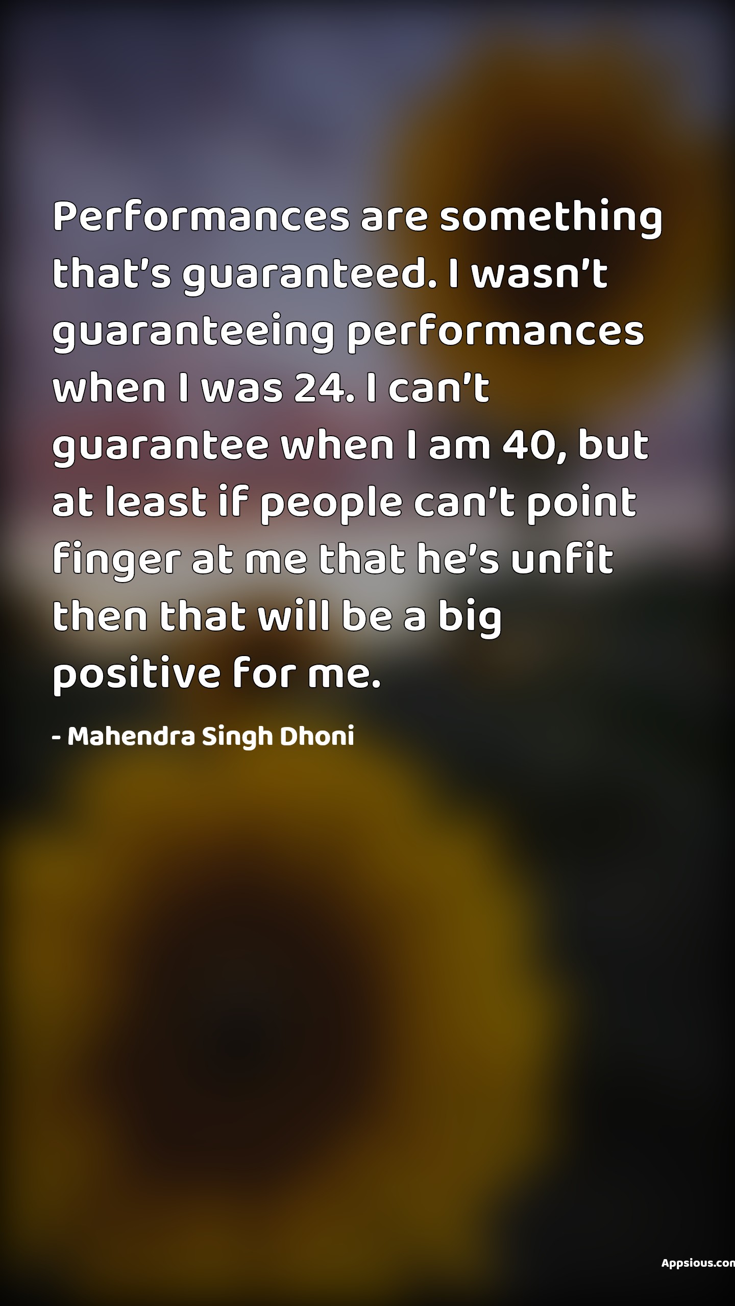 Performances are something that’s guaranteed. I wasn’t guaranteeing performances when I was 24. I can’t guarantee when I am 40, but at least if people can’t point finger at me that he’s unfit then that will be a big positive for me.