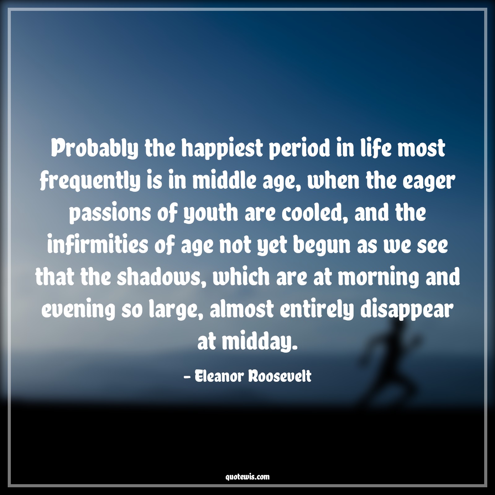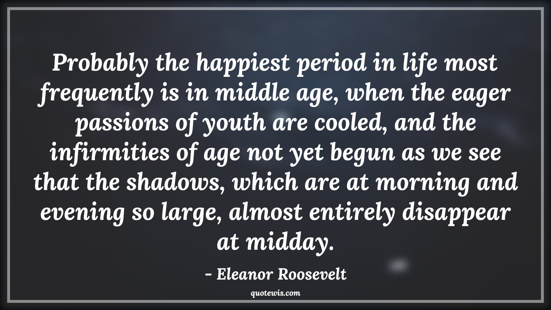 Probably the happiest period in life most frequently is in middle age, when the eager passions of youth are cooled, and the infirmities of age not yet begun as we see that the shadows, which are at morning and evening so large, almost entirely disappear at midday.