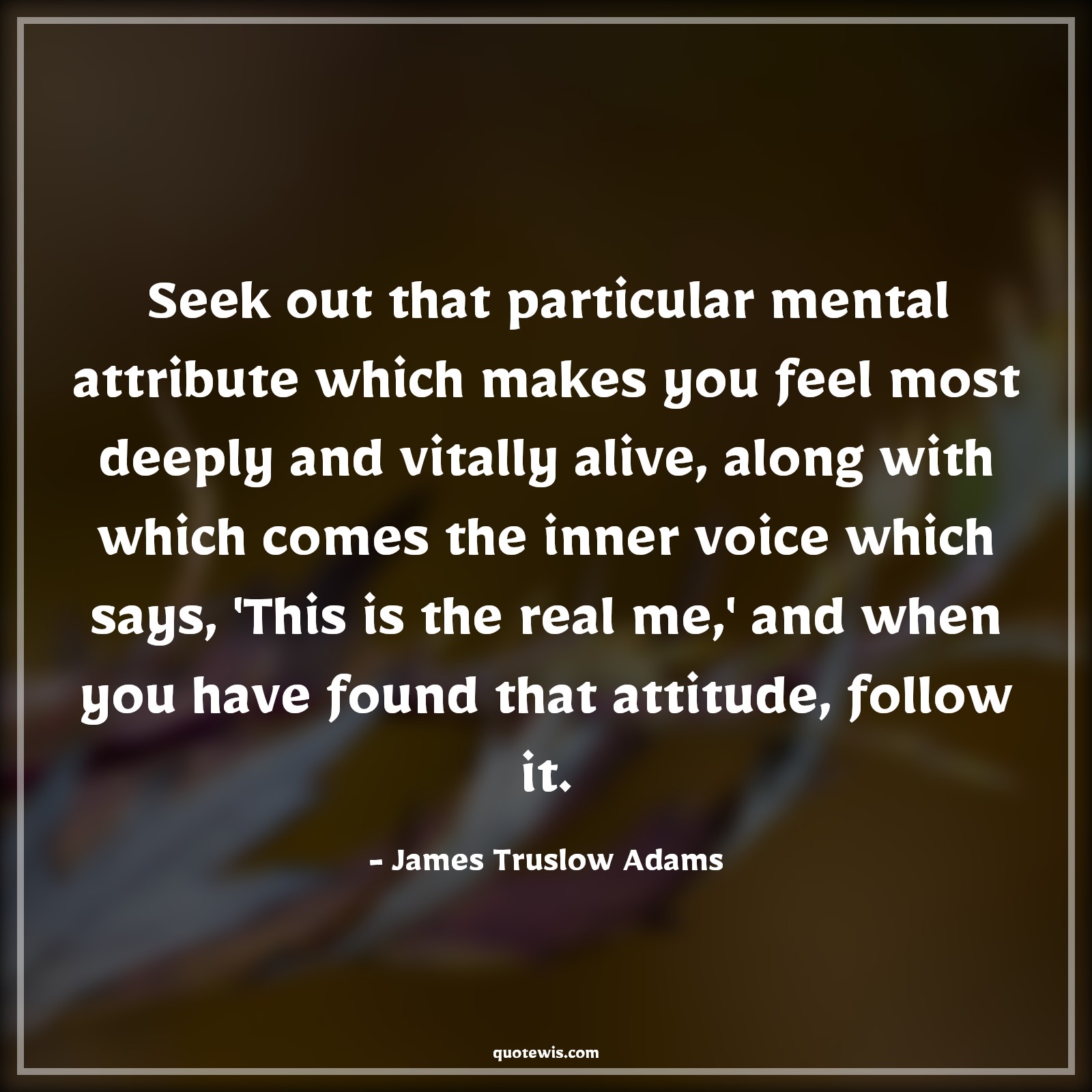 Seek out that particular mental attribute which makes you feel most deeply and vitally alive, along with which comes the inner voice which says, 'This is the real me,' and when you have found that attitude, follow it.
