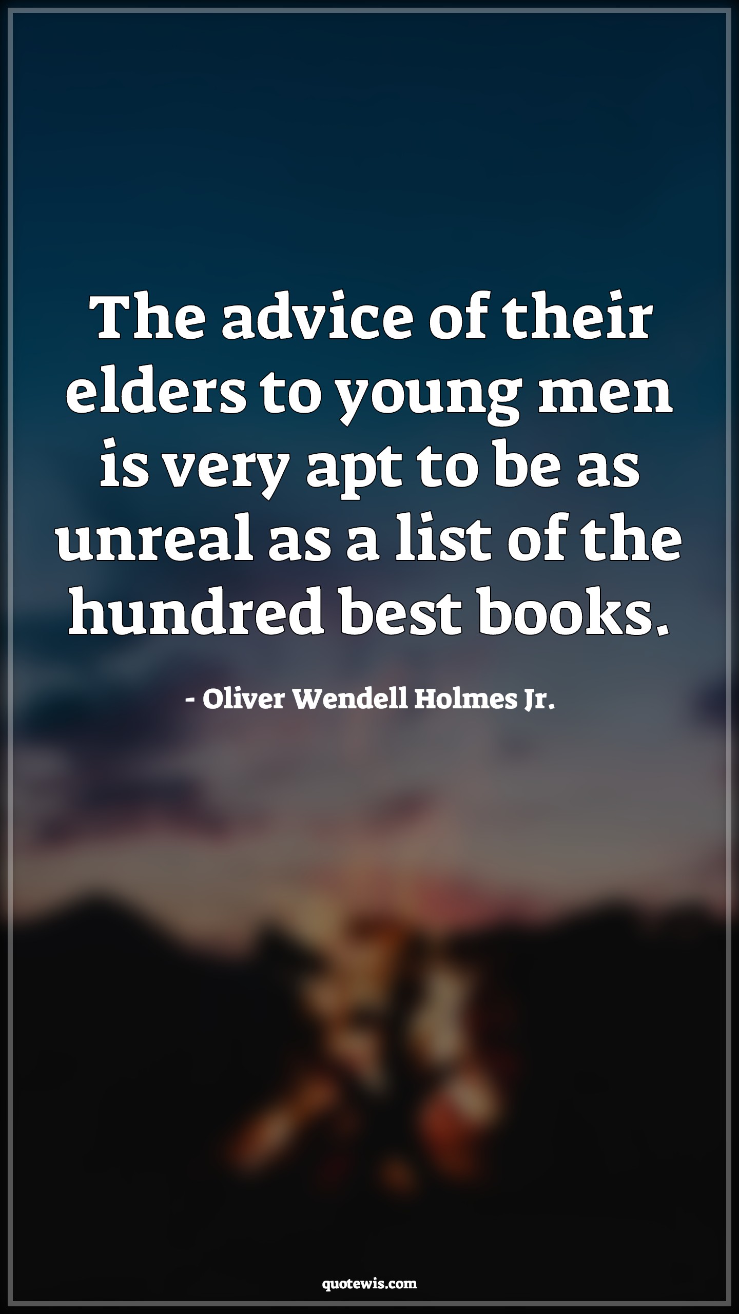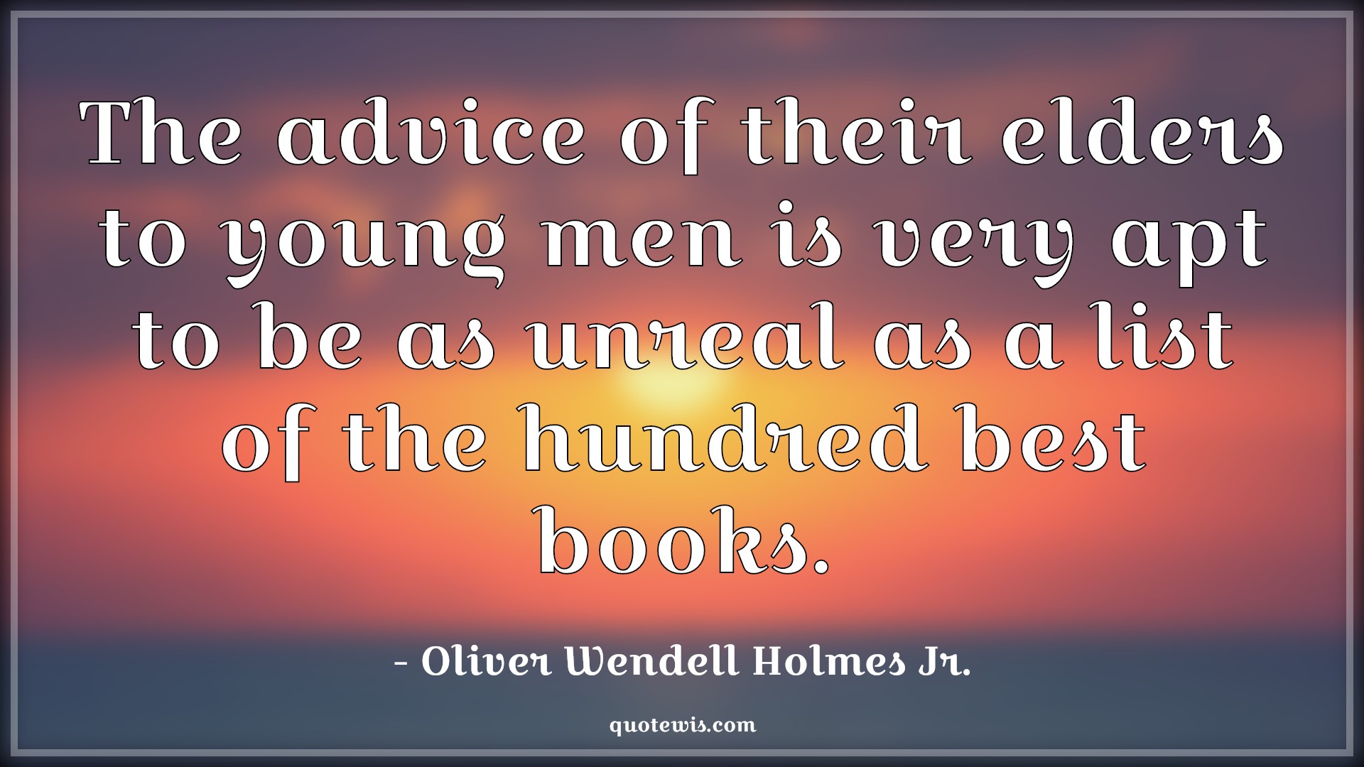 The advice of their elders to young men is very apt to be as unreal as a list of the hundred best books.