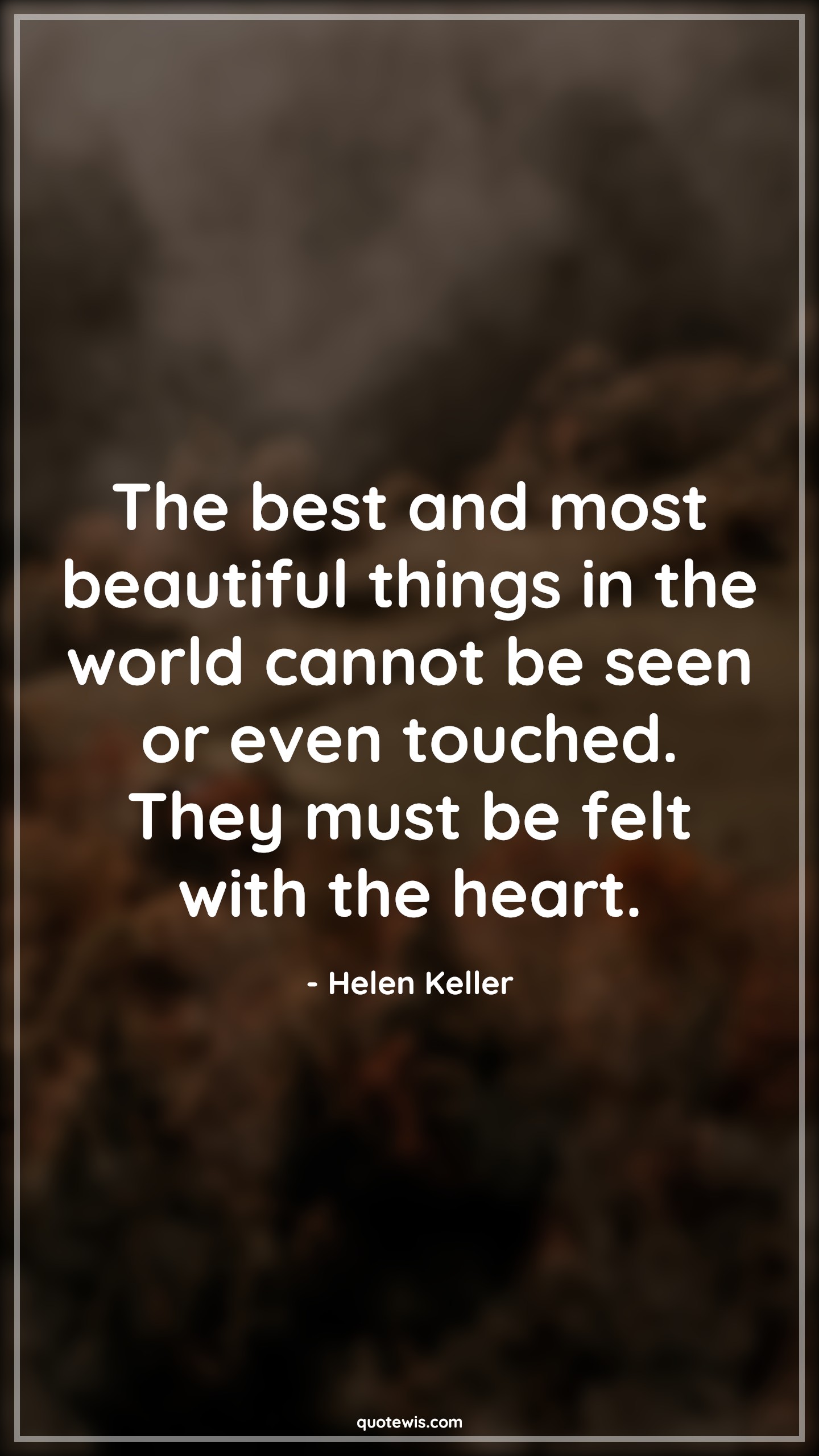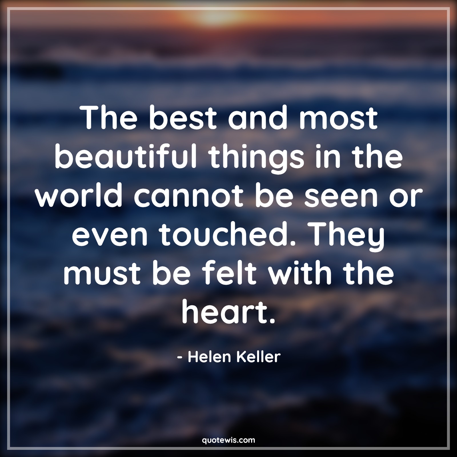 The best and most beautiful things in the world cannot be seen or even touched. They must be felt with the heart.