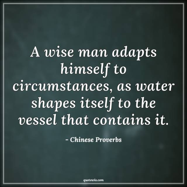 A wise man adapts himself to circumstances, as water shapes itself to the vessel that contains it.