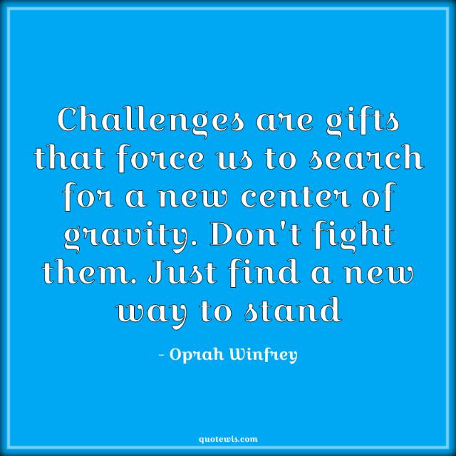 Challenges are gifts that force us to search for a new center of gravity. Don't fight them. Just find a new way to stand