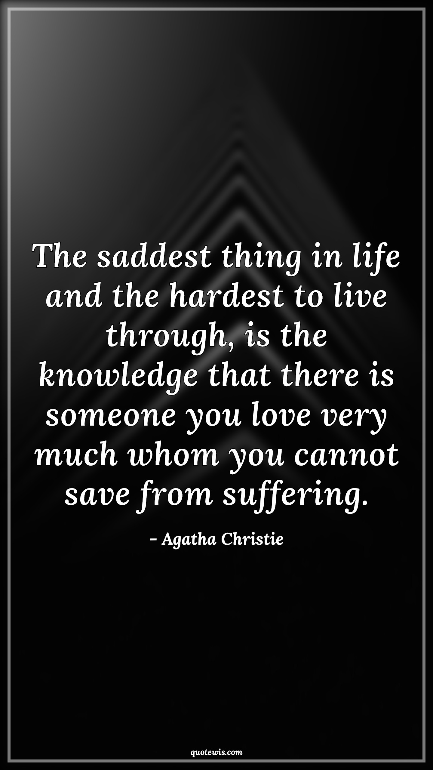 The saddest thing in life and the hardest to live through, is the knowledge that there is someone you love very much whom you cannot save from suffering.