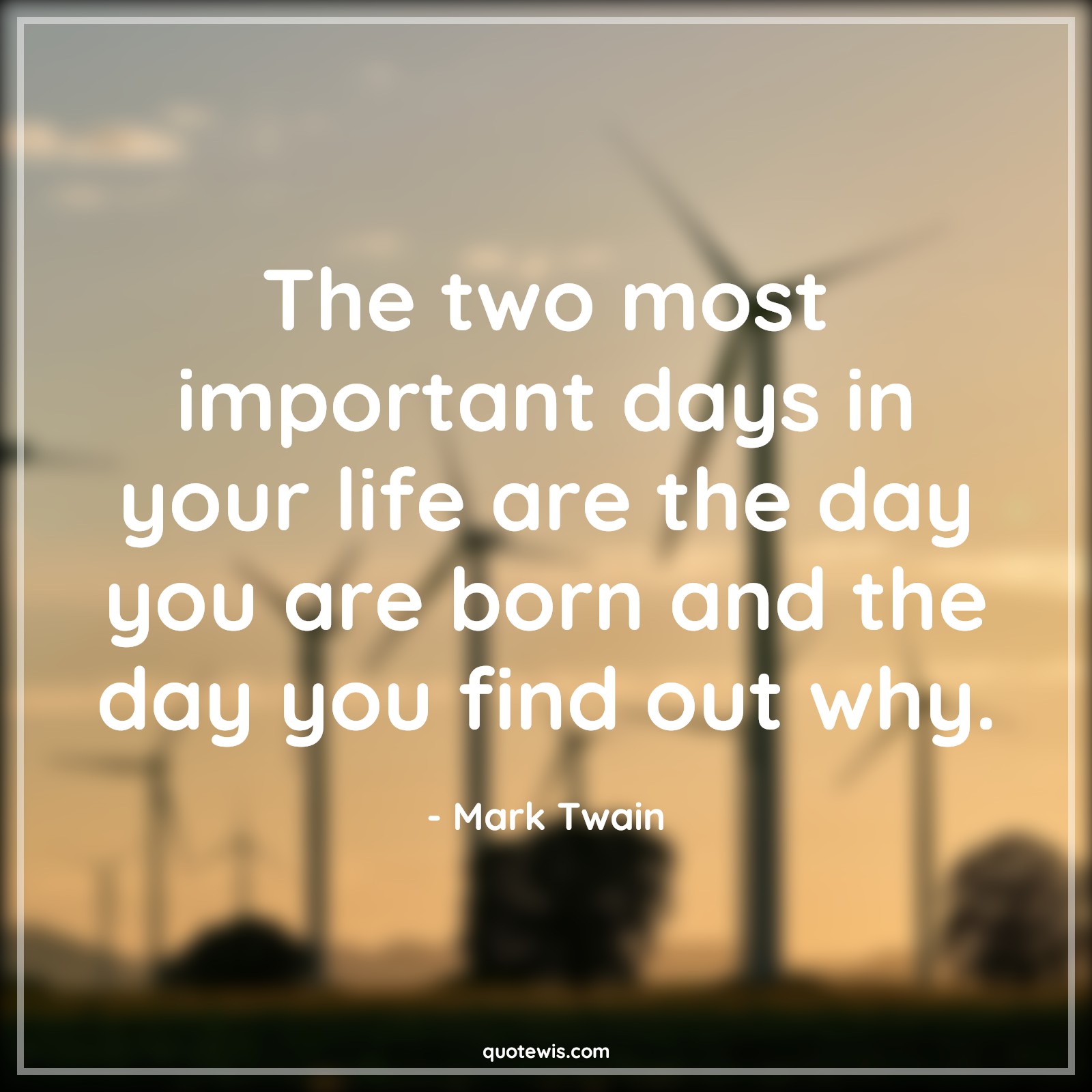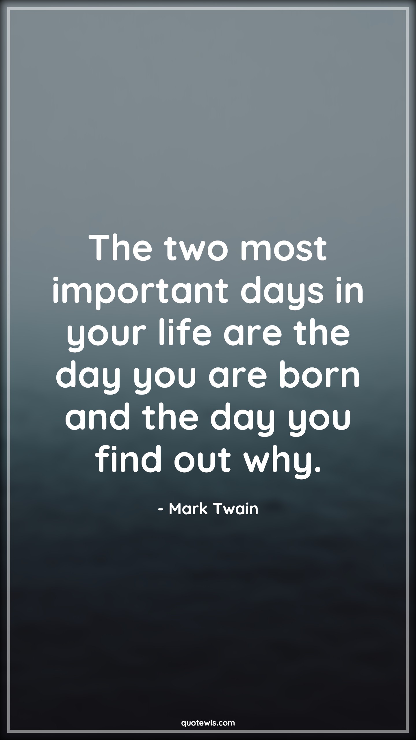 The two most important days in your life are the day you are born and the day you find out why.