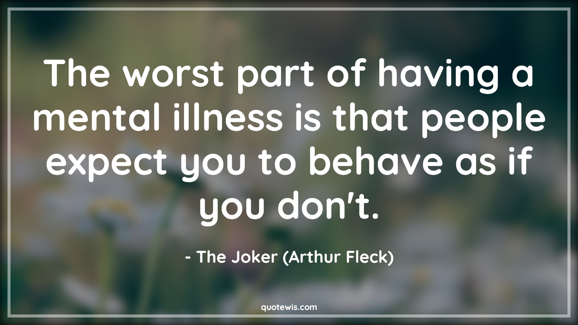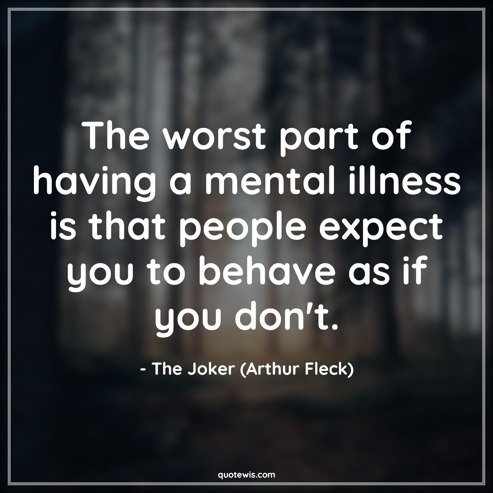 The worst part of having a mental illness is that people expect you to behave as if you don't.