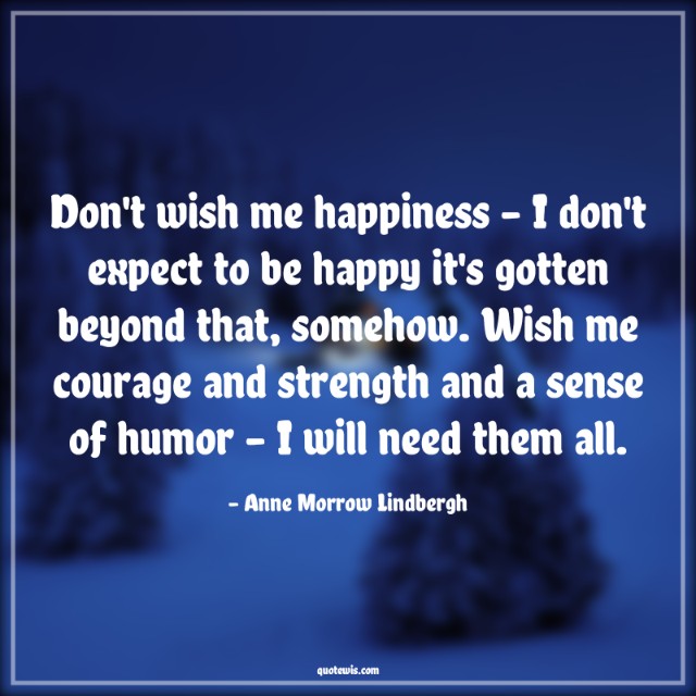 Don't wish me happiness - I don't expect to be happy it's gotten beyond that, somehow. Wish me courage and strength and a sense of humor - I will need them all.