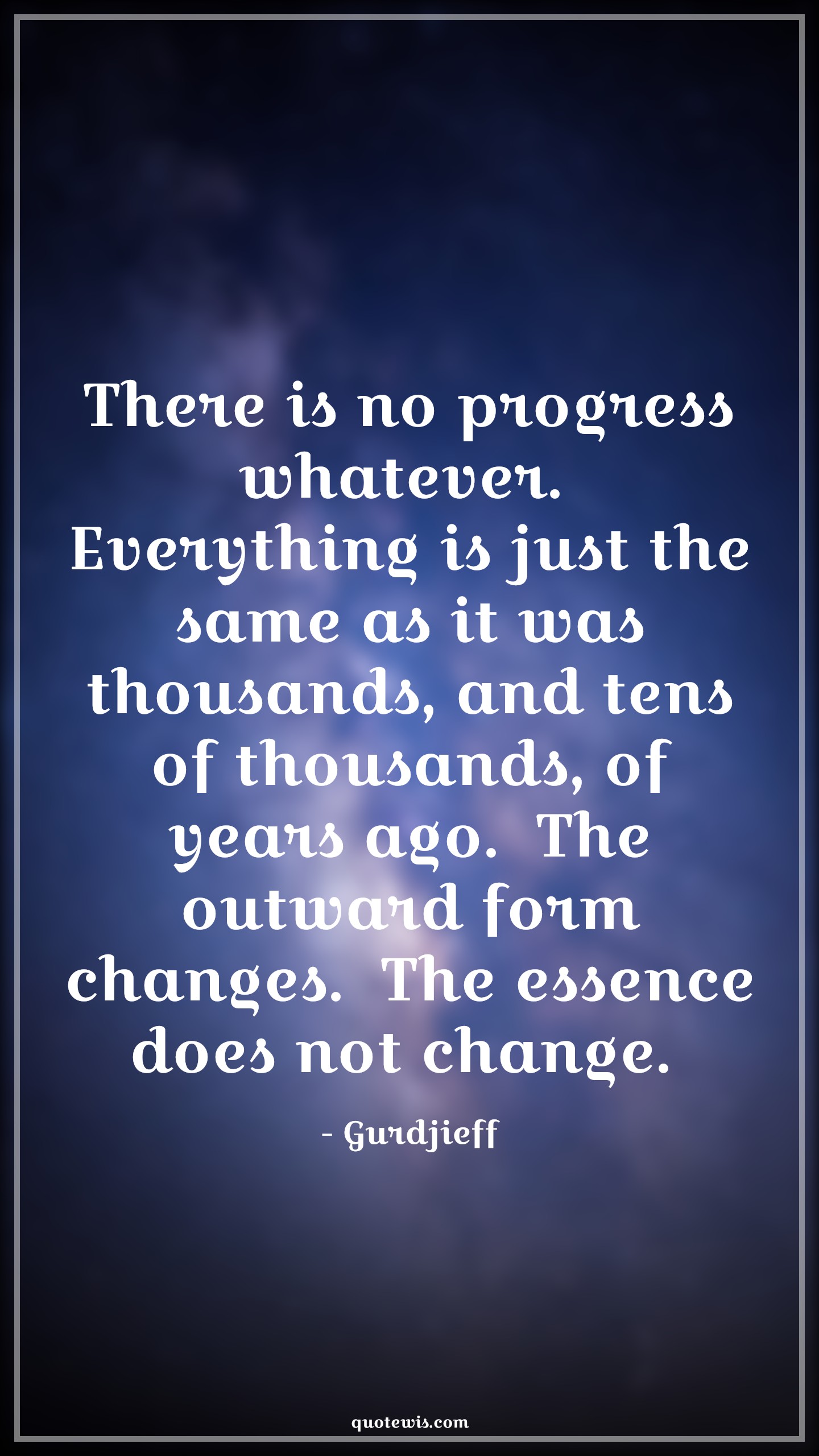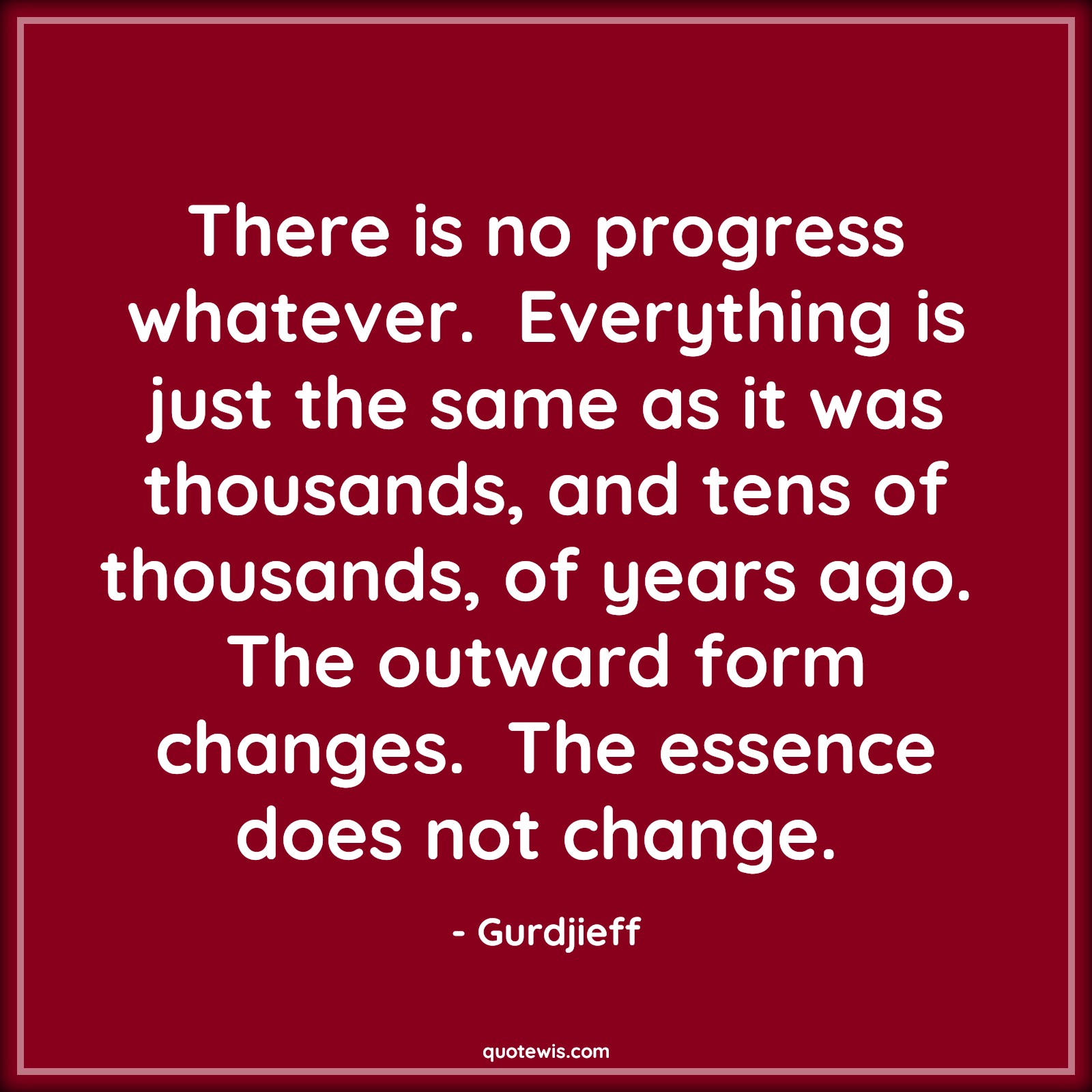 There is no progress whatever. Everything is just the same as it was thousands, and tens of thousands, of years ago. The outward form changes. The essence does not change.