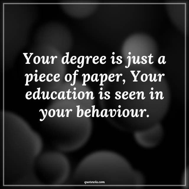 Your degree is just a piece of paper, Your education is seen in your behaviour.