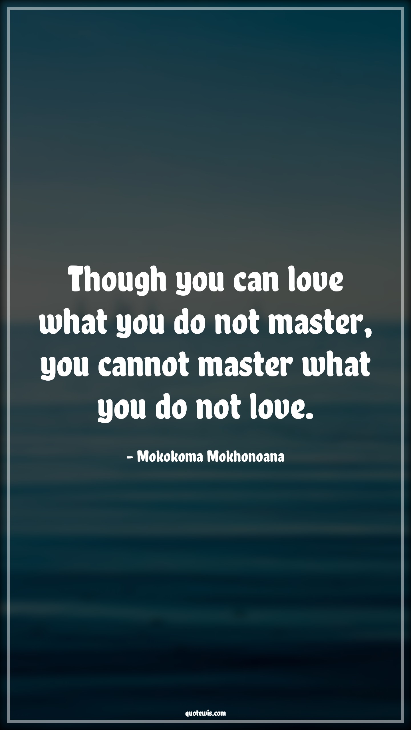 Though you can love what you do not master, you cannot master what you do not love.