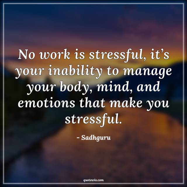 No work is stressful, it’s your inability to manage your body, mind, and emotions that make you stressful.