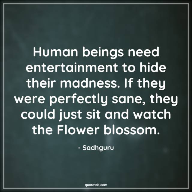 Human beings need entertainment to hide their madness. If they were perfectly sane, they could just sit and watch the Flower blossom.