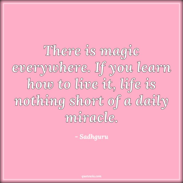 There is magic everywhere. If you learn how to live it, life is nothing short of a daily miracle.