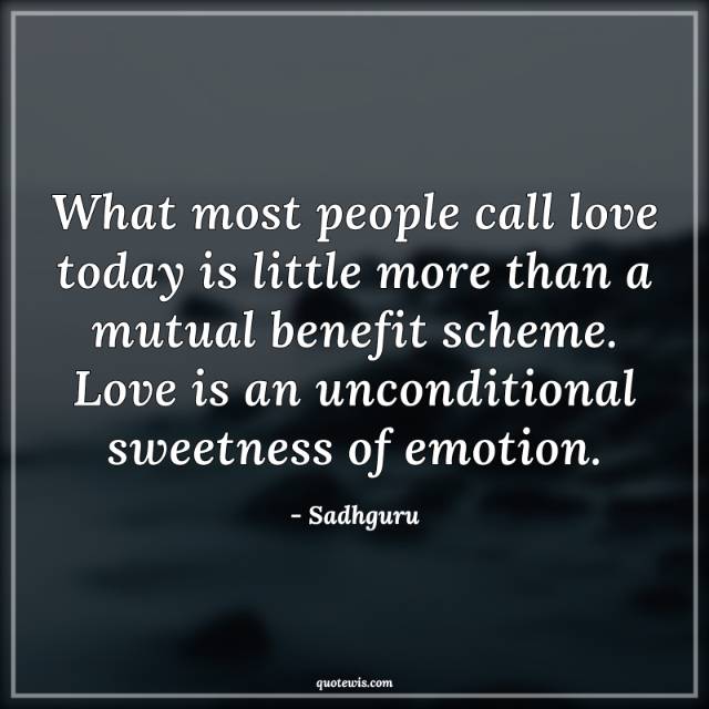 What most people call love today is little more than a mutual benefit scheme. Love is an unconditional sweetness of emotion.
