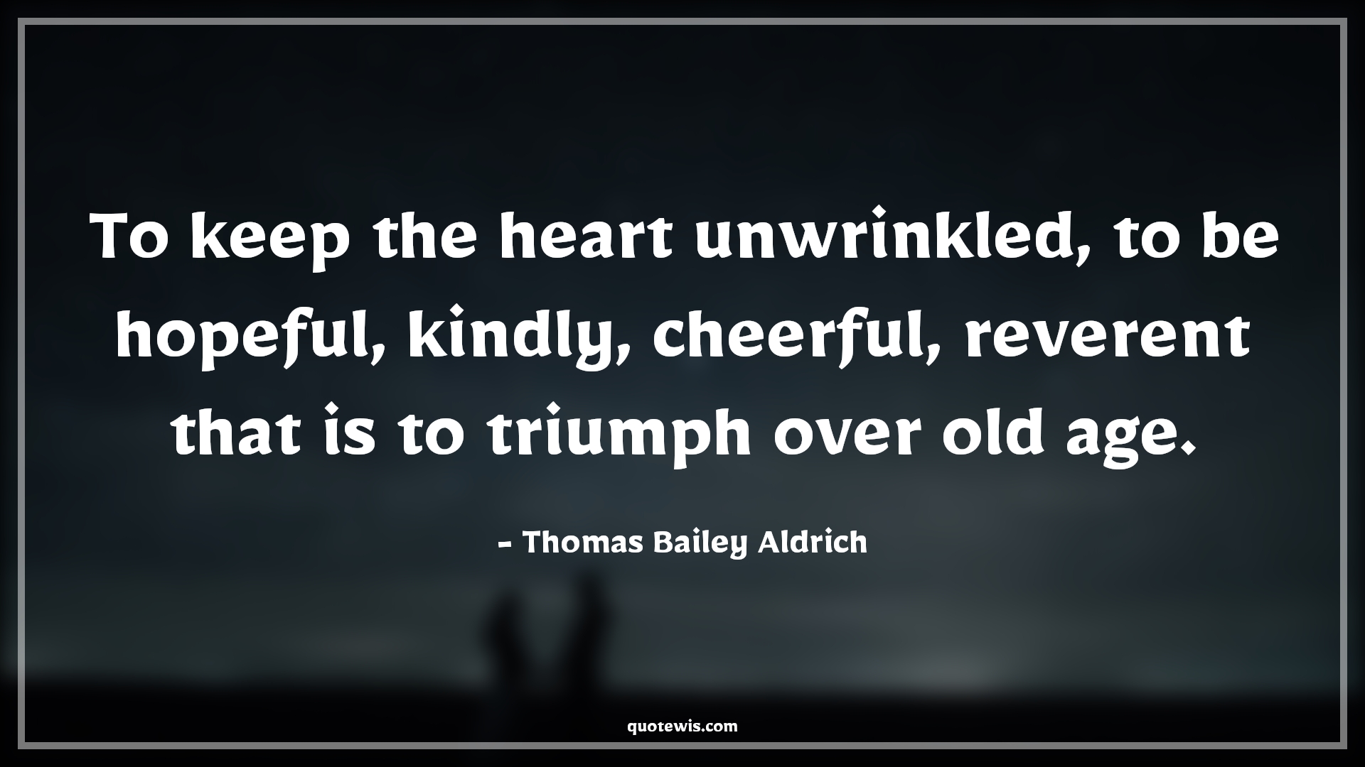 To keep the heart unwrinkled, to be hopeful, kindly, cheerful, reverent that is to triumph over old age.