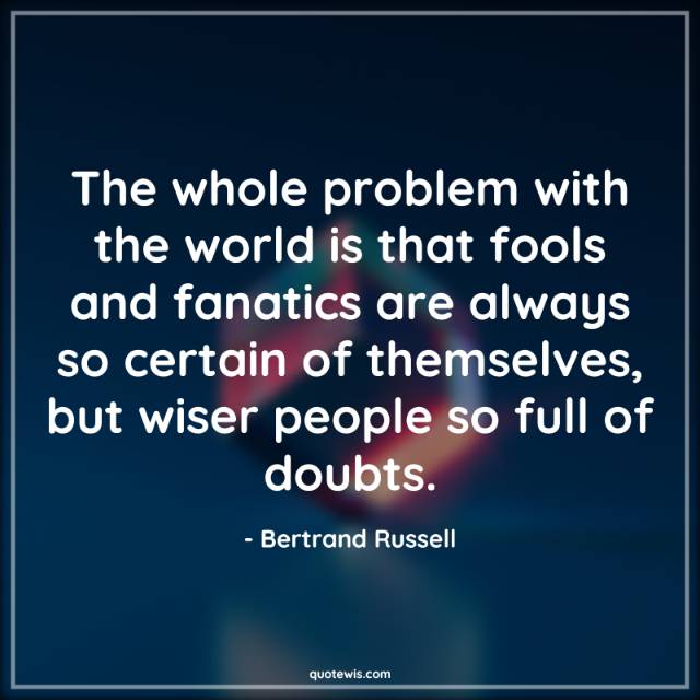 The whole problem with the world is that fools and fanatics are always so certain of themselves, but wiser people so full of doubts.