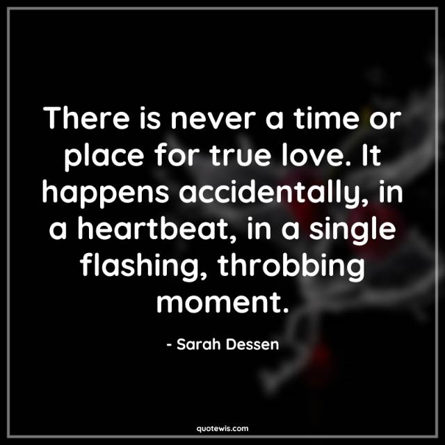 There is never a time or place for true love. It happens accidentally, in a heartbeat, in a single flashing, throbbing moment.