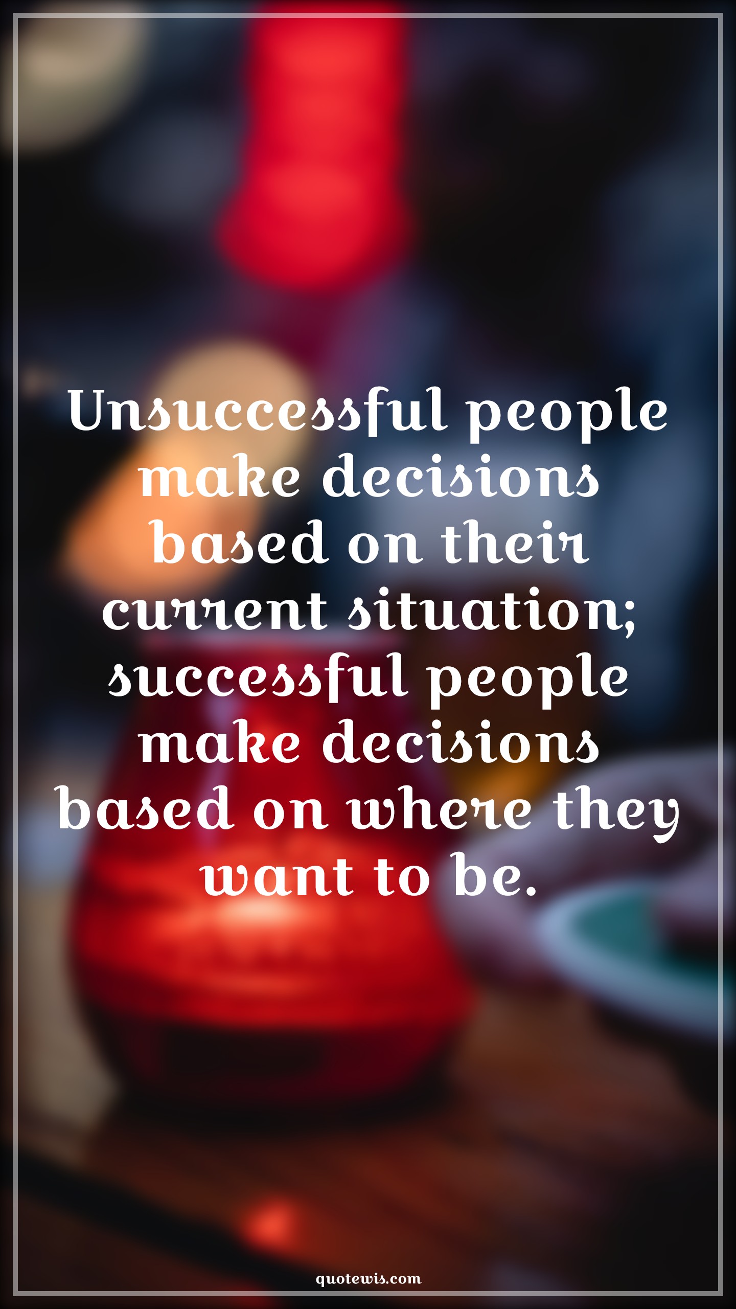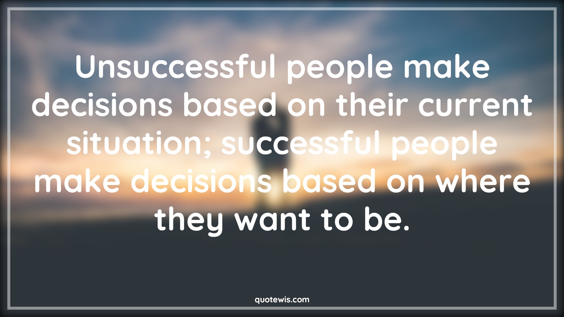 Unsuccessful people make decisions based on their current situation; successful people make decisions based on where they want to be.