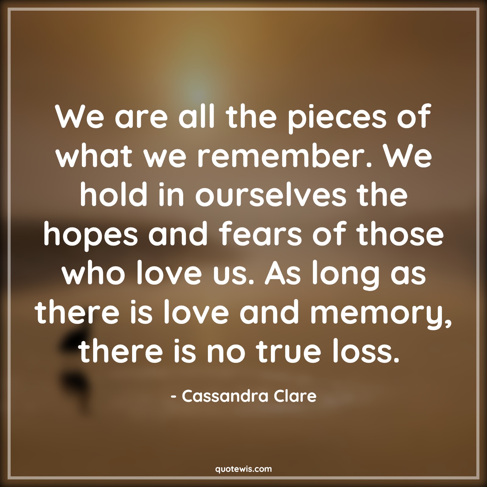 We are all the pieces of what we remember. We hold in ourselves the hopes and fears of those who love us. As long as there is love and memory, there is no true loss.