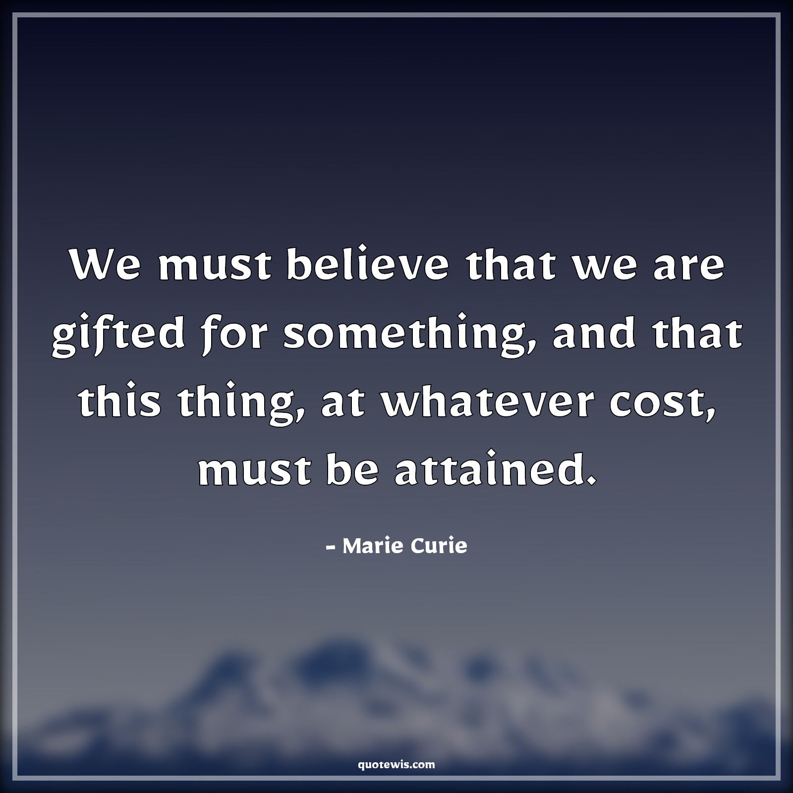 We must believe that we are gifted for something, and that this thing, at whatever cost, must be attained.