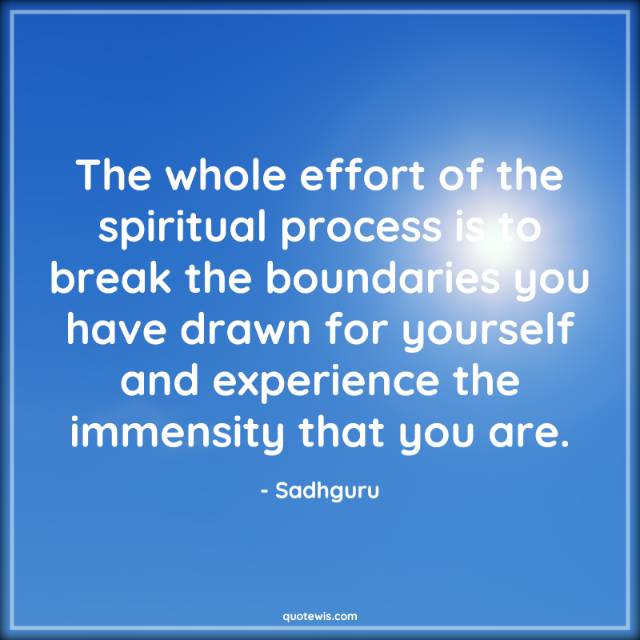 The whole effort of the spiritual process is to break the boundaries you have drawn for yourself and experience the immensity that you are.