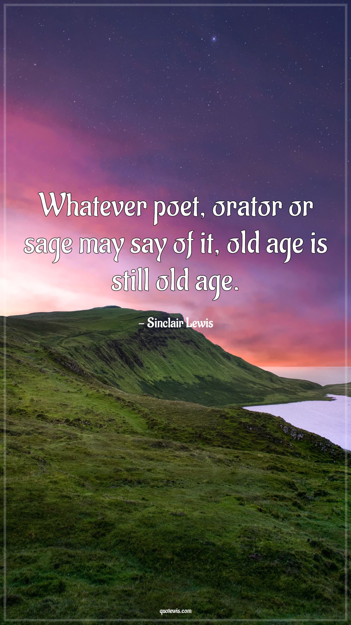 Quotes > Sinclair Lewis Quotes > Whatever poet, orator or sage may say of it, old age is still old age.