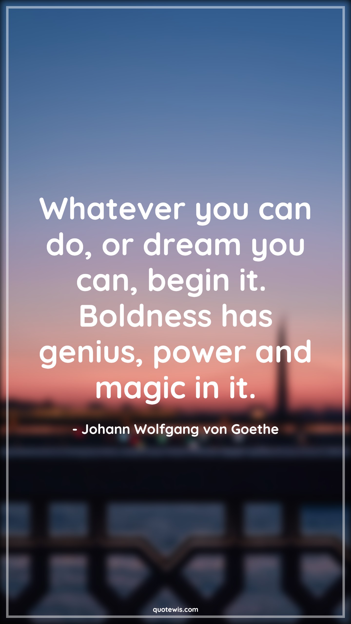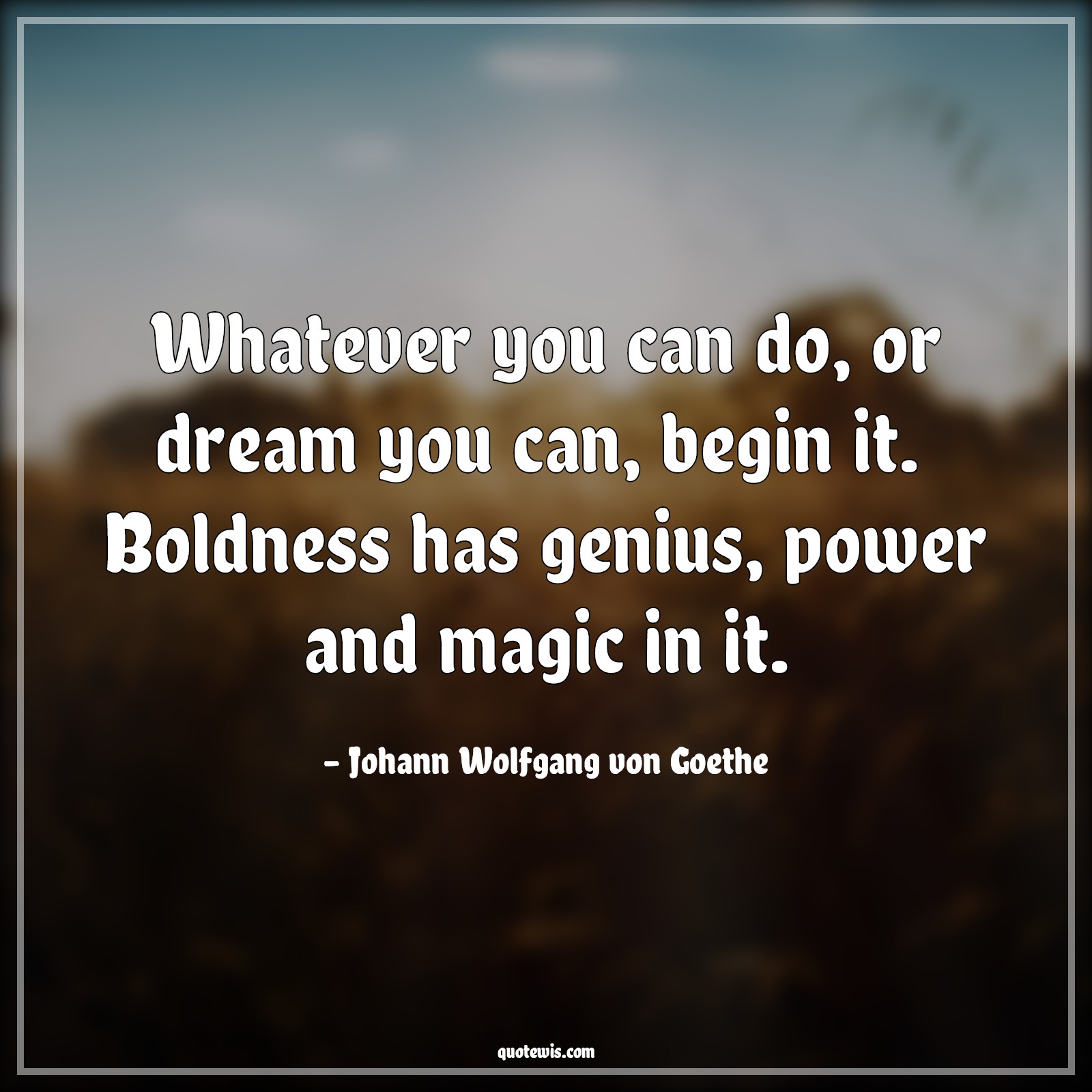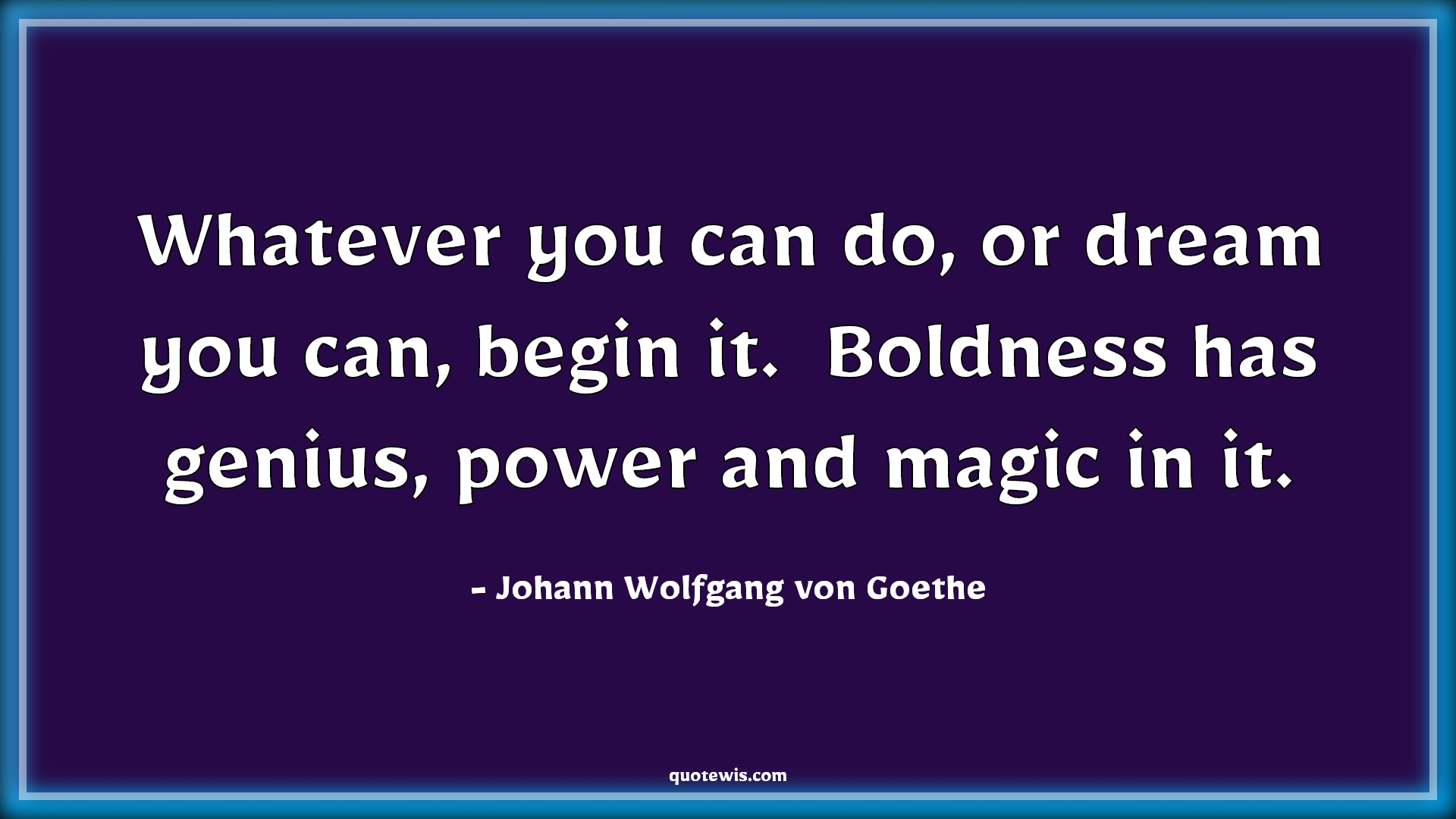 Whatever you can do, or dream you can, begin it. Boldness has genius, power and magic in it.