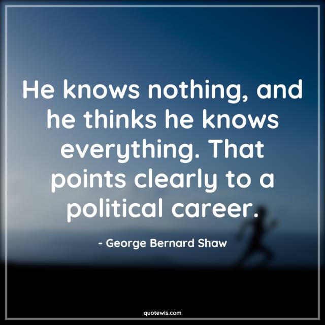 He knows nothing, and he thinks he knows everything. That points clearly to a political career.