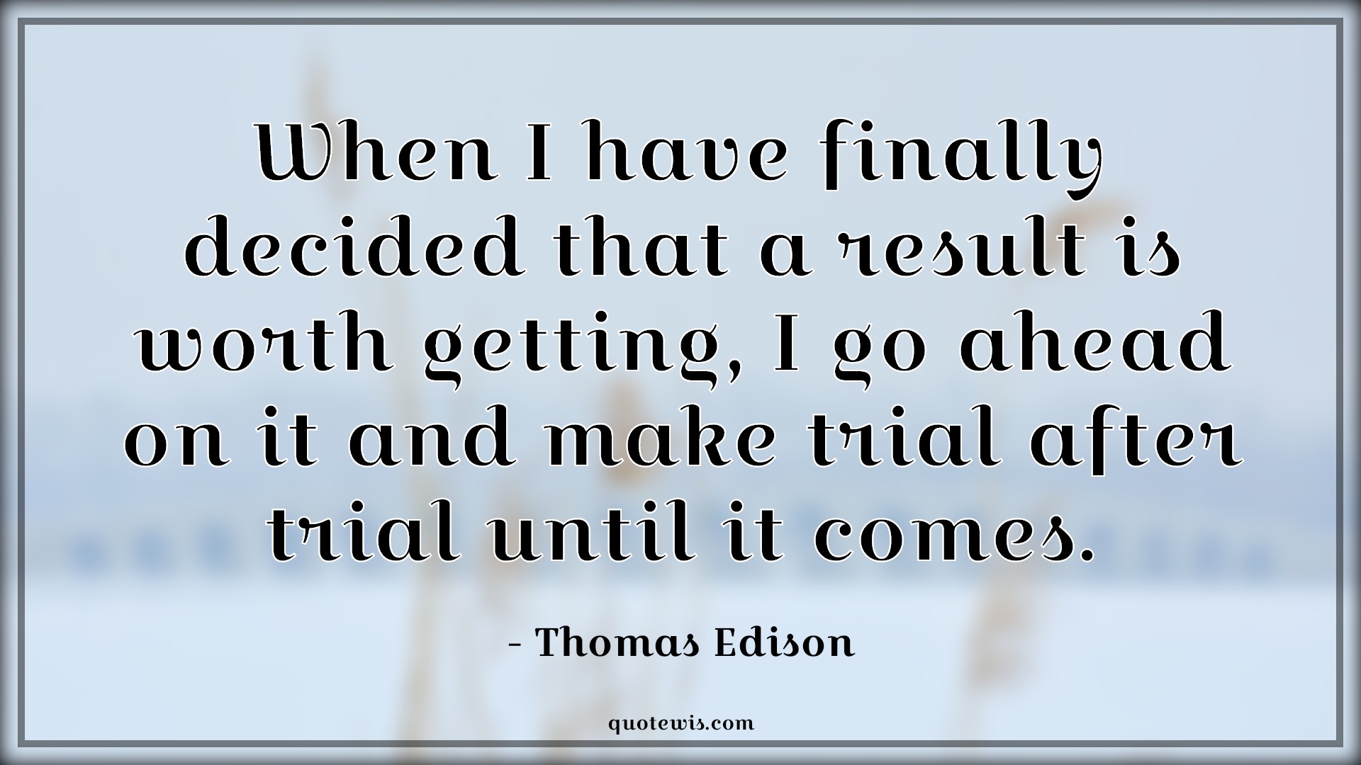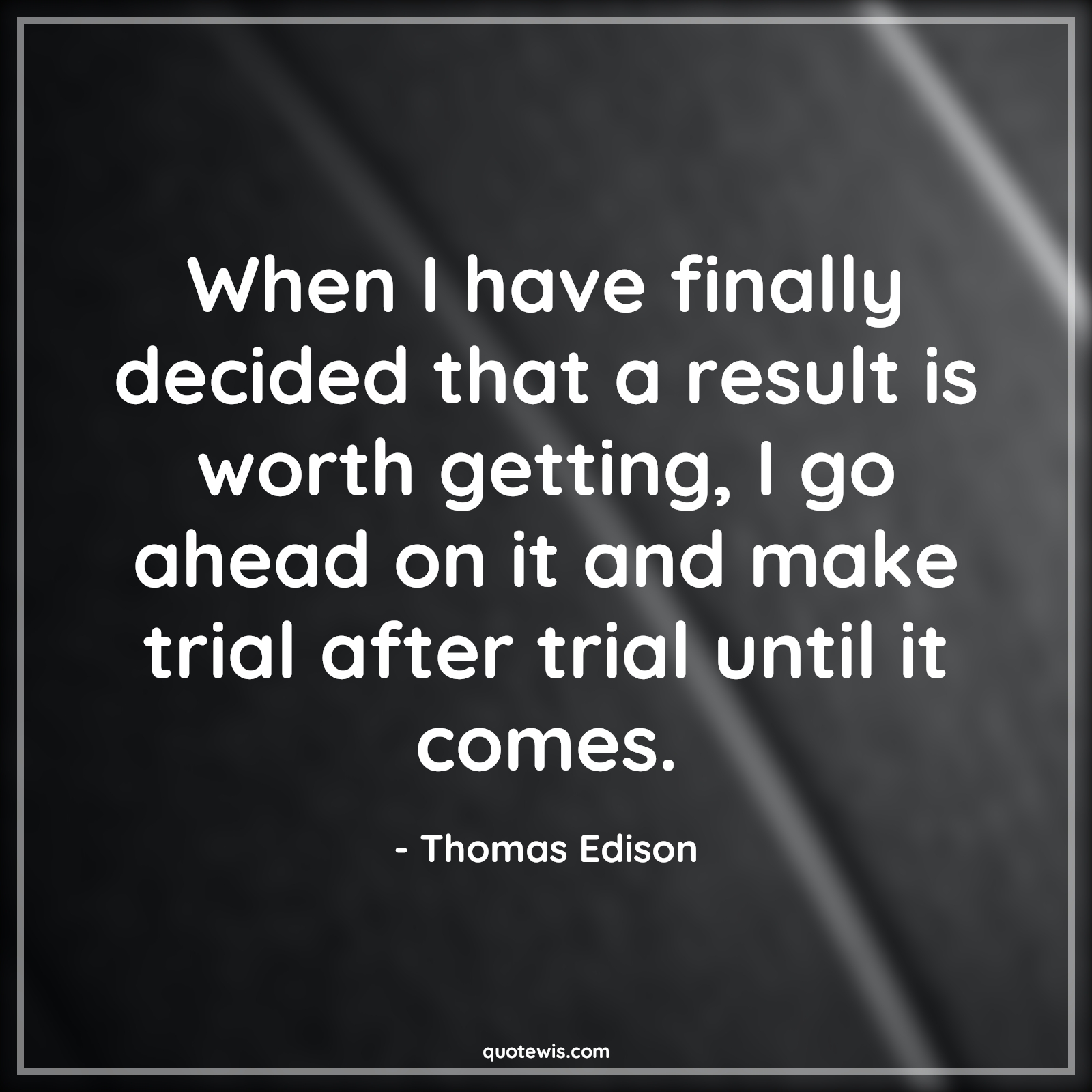 When I have finally decided that a result is worth getting, I go ahead on it and make trial after trial until it comes.