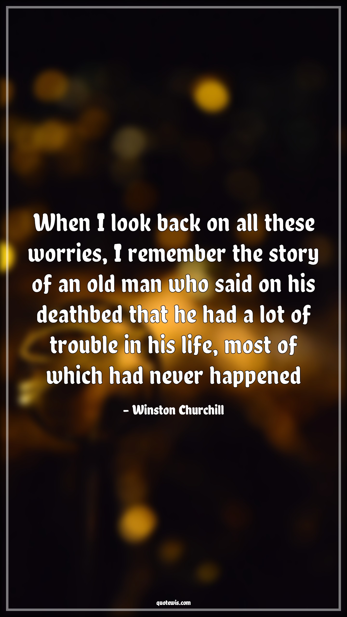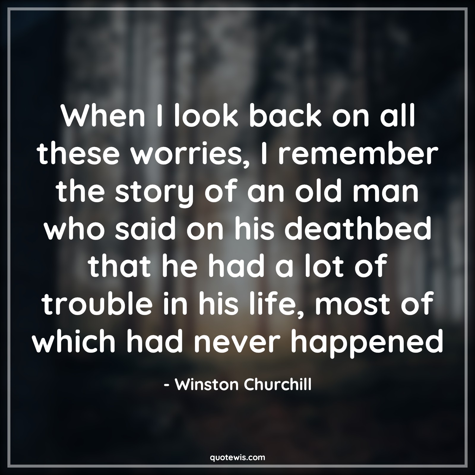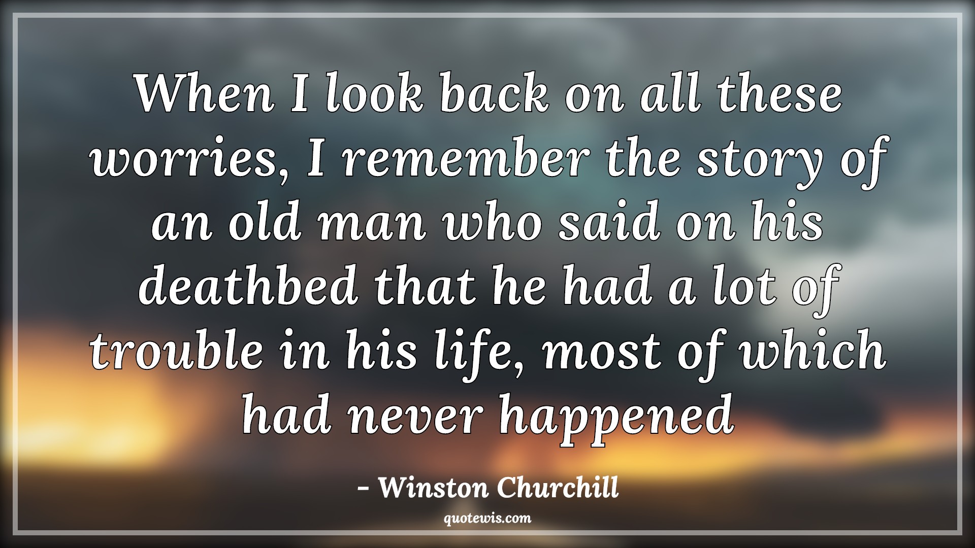 When I look back on all these worries, I remember the story of an old man who said on his deathbed that he had a lot of trouble in his life, most of which had never happened