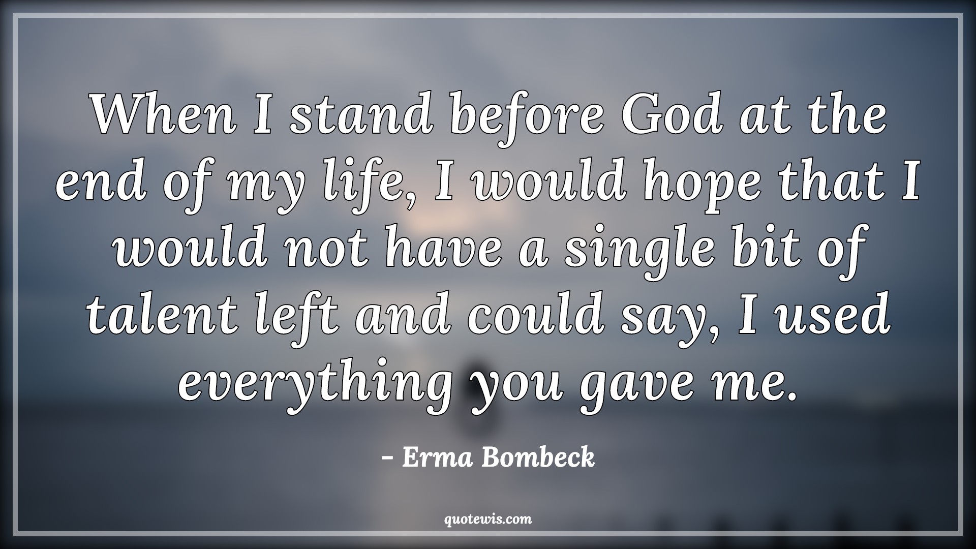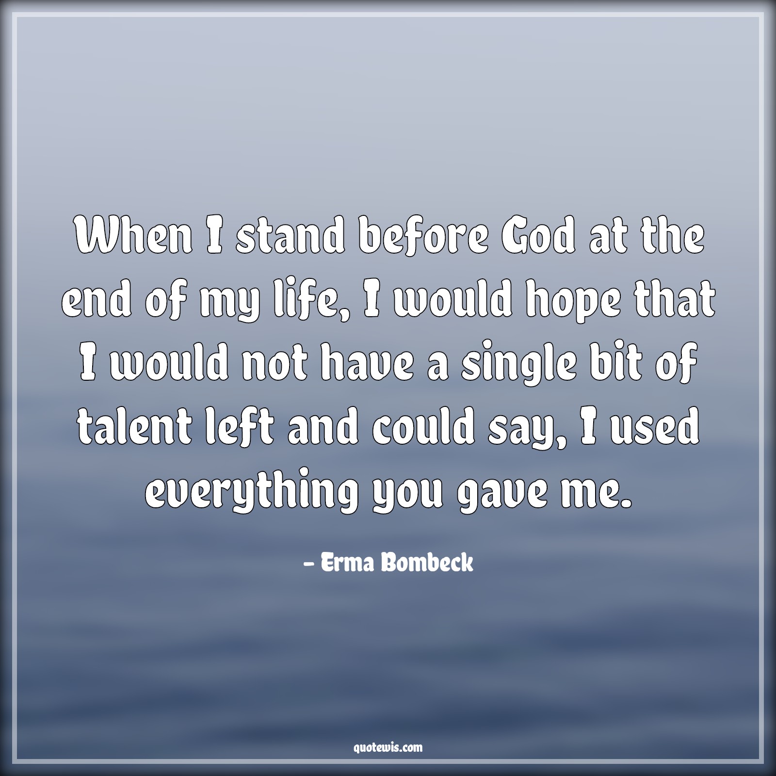 When I stand before God at the end of my life, I would hope that I would not have a single bit of talent left and could say, I used everything you gave me.