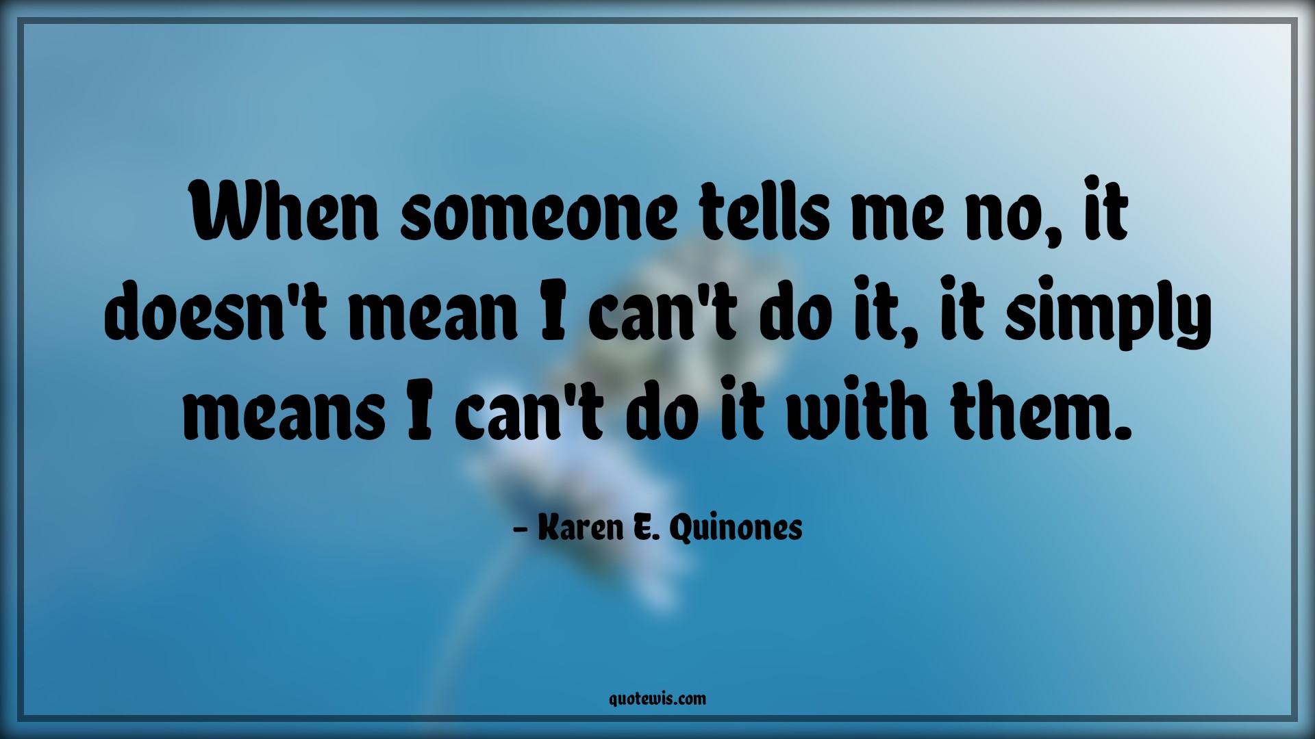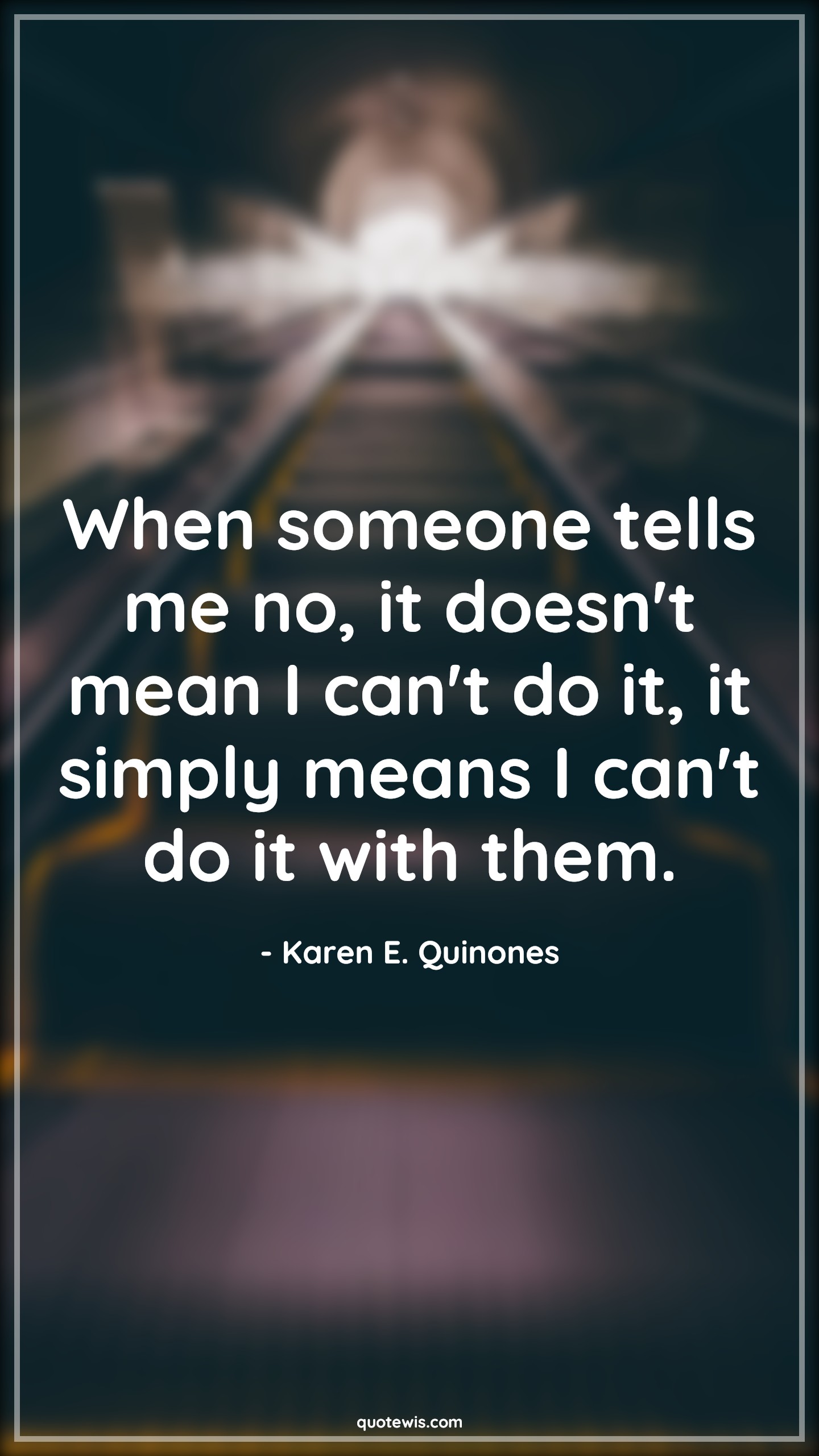 When someone tells me no, it doesn't mean I can't do it, it simply means I can't do it with them.